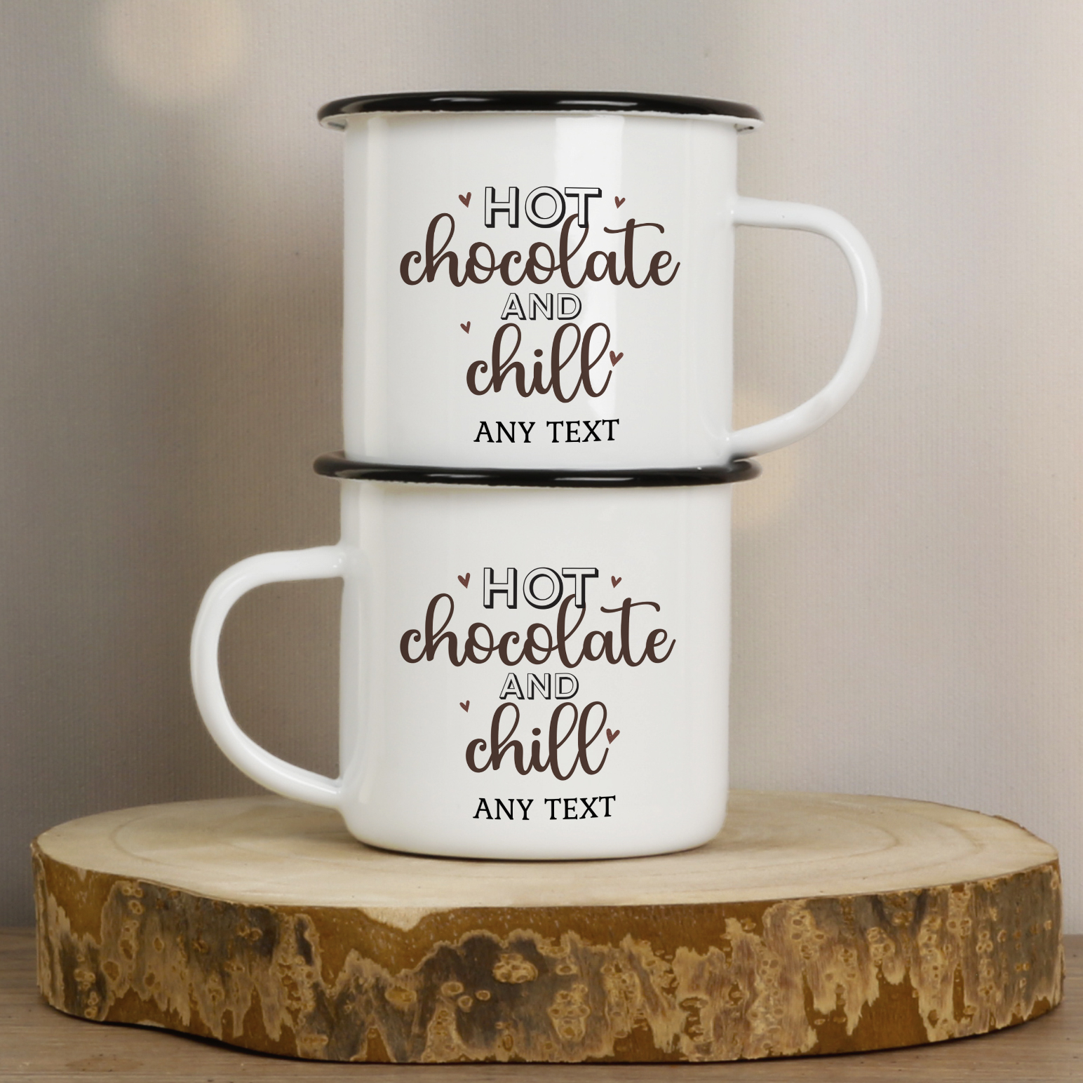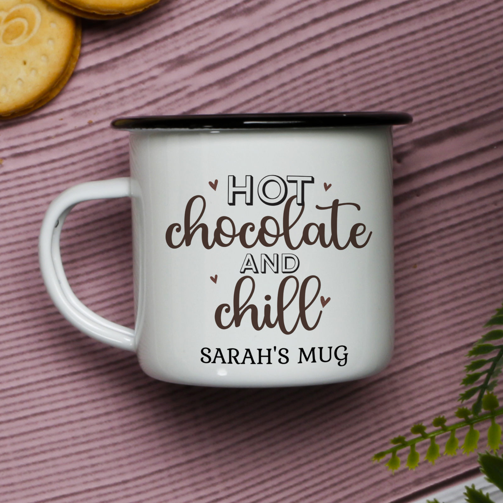 Hot Chocolate and Chill - Personalised Enamel Mug is made for outdoor enthusiasts.