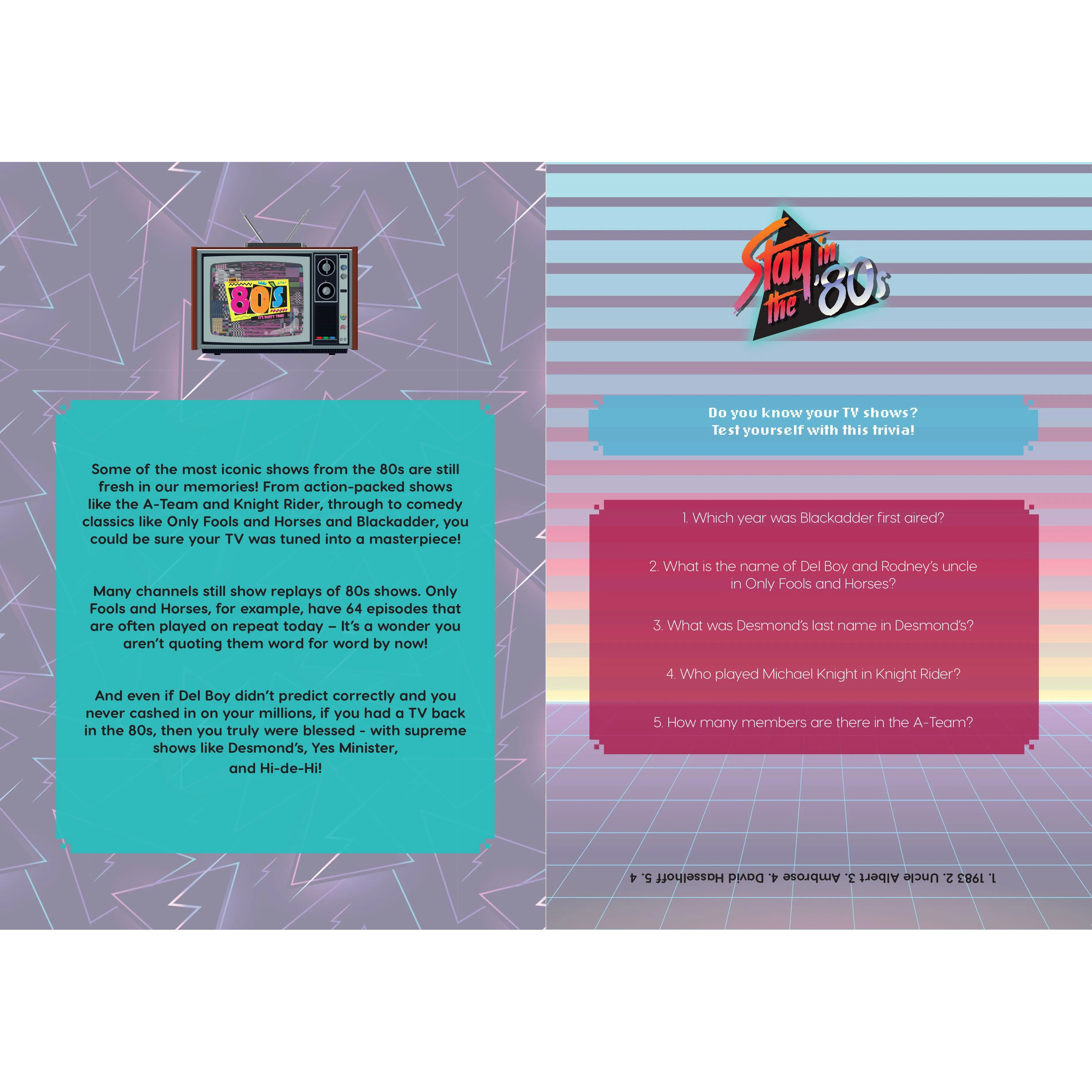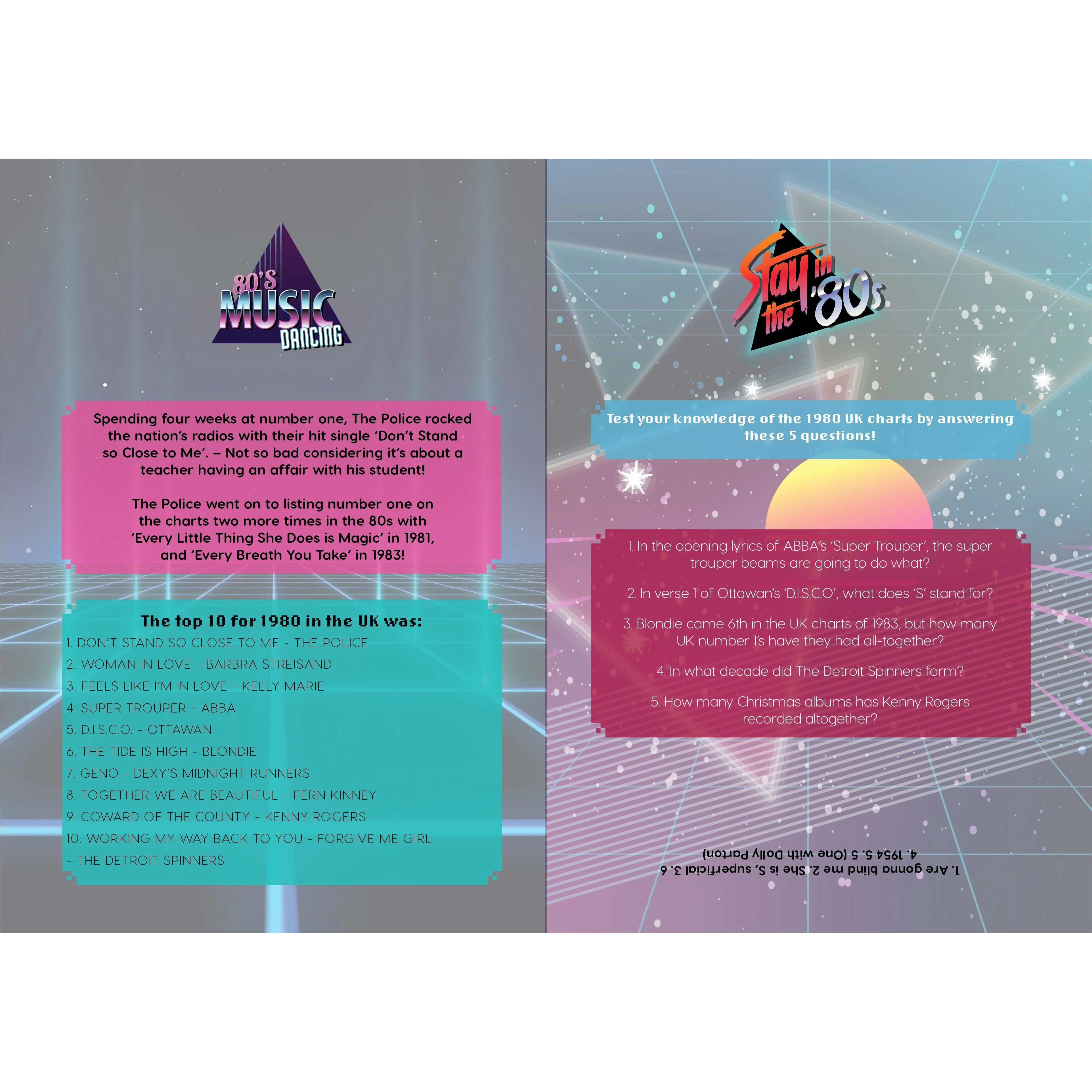 - Ultimate 80s Experience: From the unforgettable fashion trends to chart-topping music hits, sports milestones, and the political landscape, this book covers it all with entertaining trivia, colourful illustrations, jokes, iconic quotes, and even nostalgic recipes.