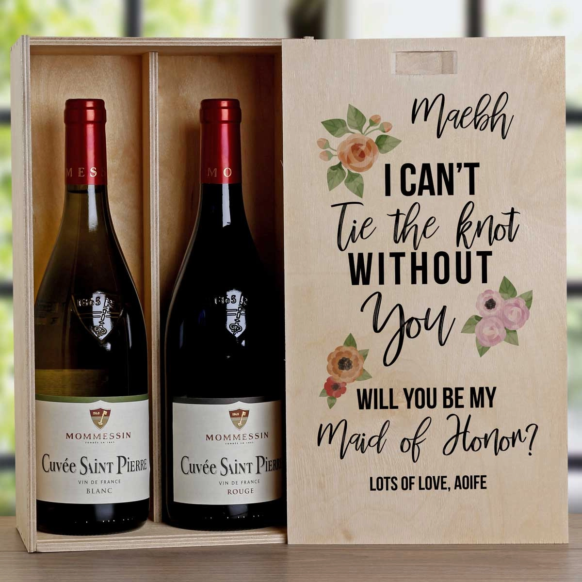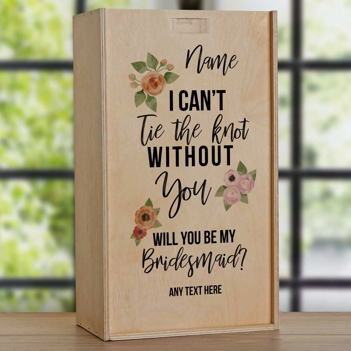 I Can't Tie The Knot Without You Bridesmaid - Personalised Wooden Double Wine Box