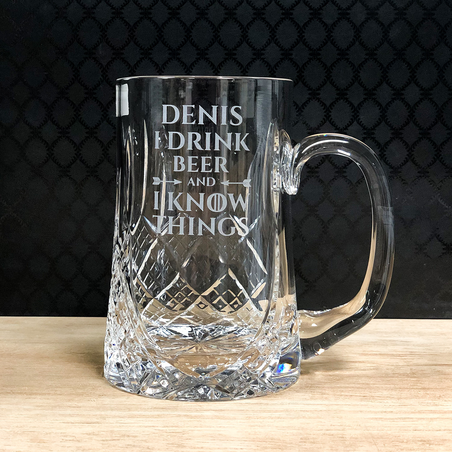 This fabulous crystal tankard will be engraved as illustrated.