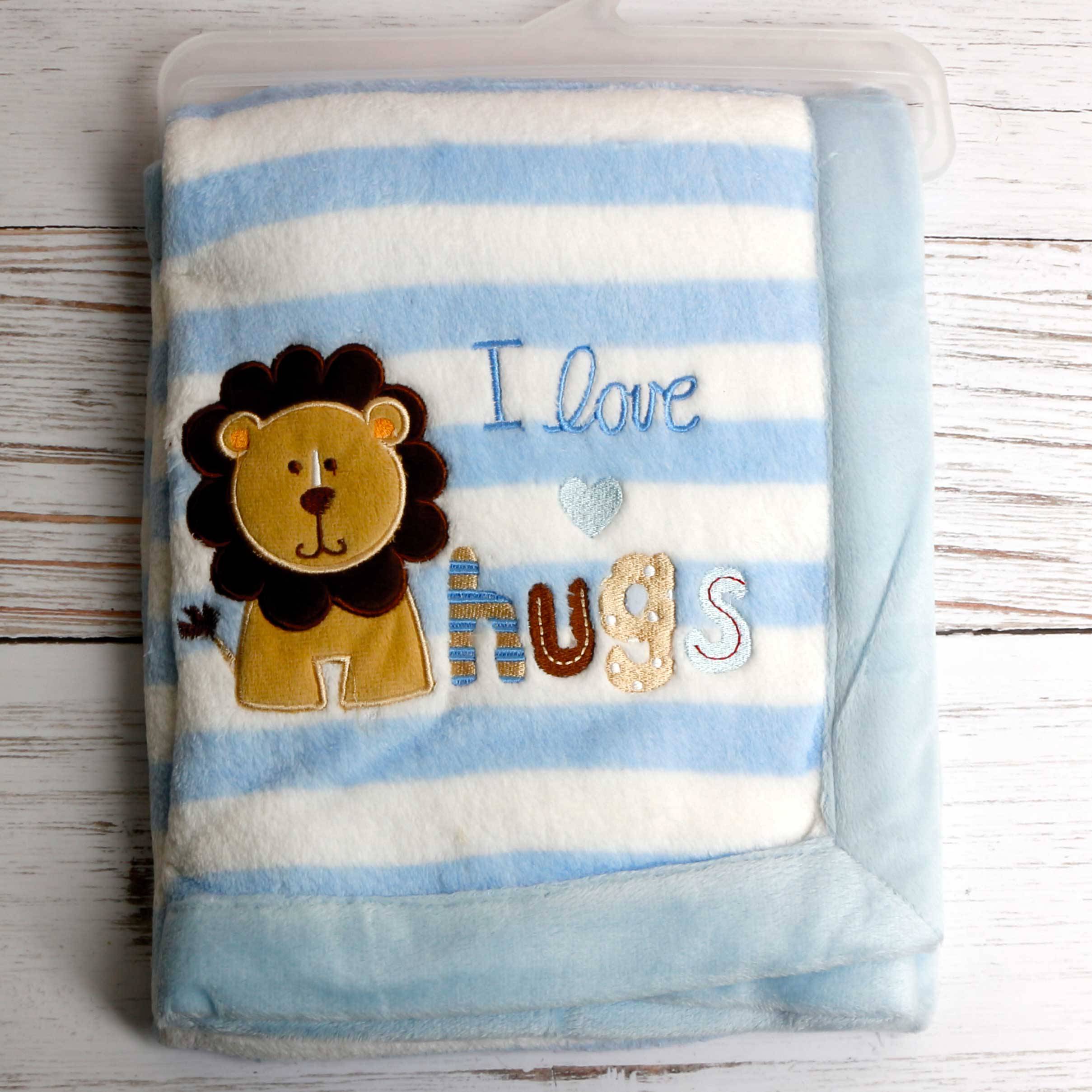 Beautiful baby gift "I Love Hugs" blanket, personalised with baby's name.