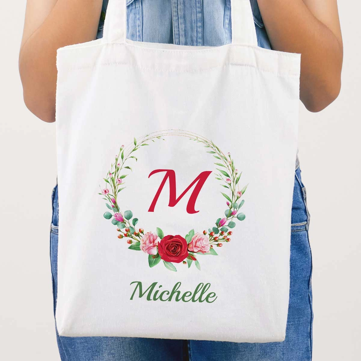 Initial And Name Flowers Personalised Tote Bag