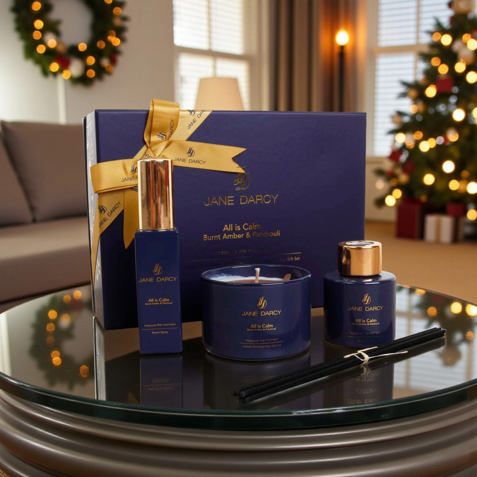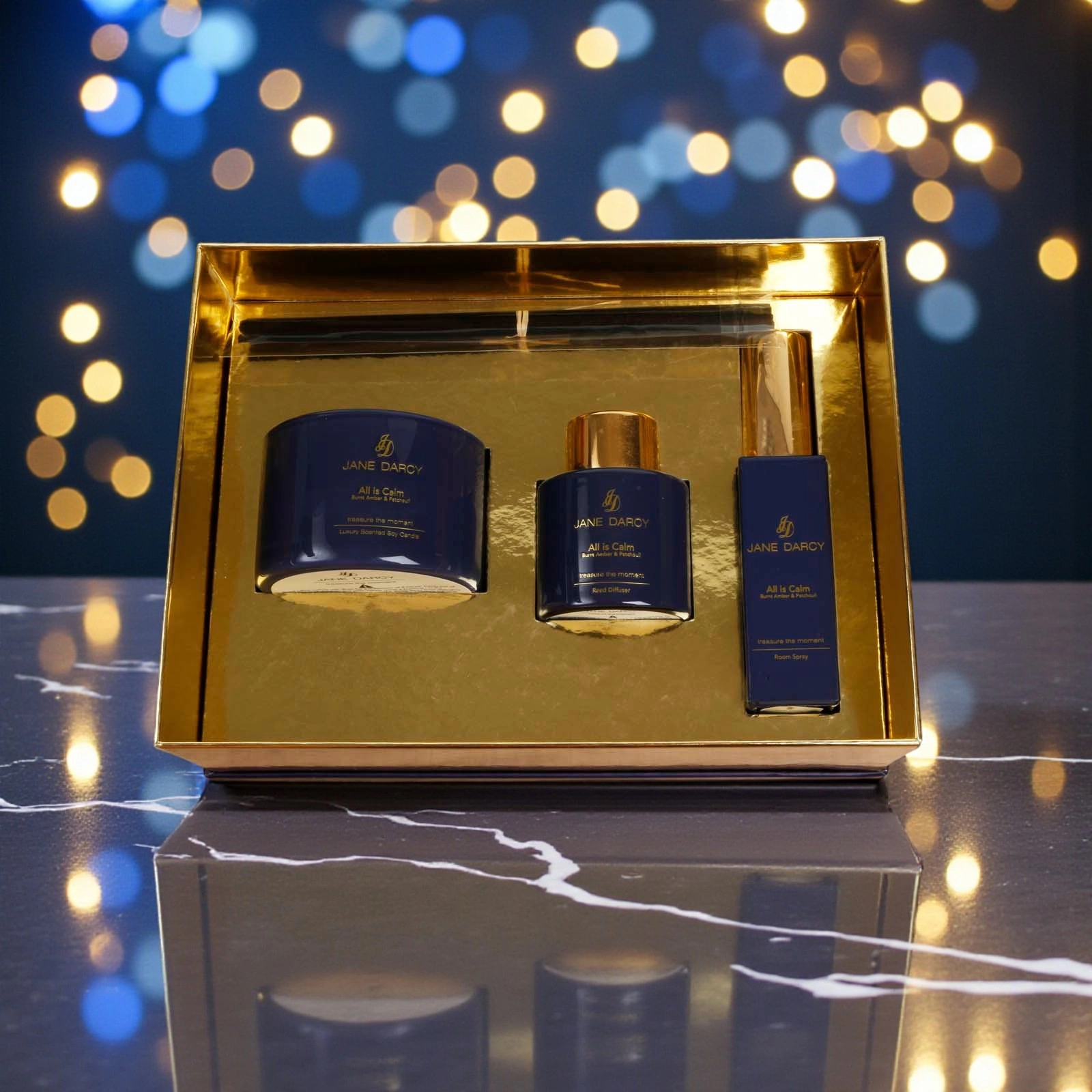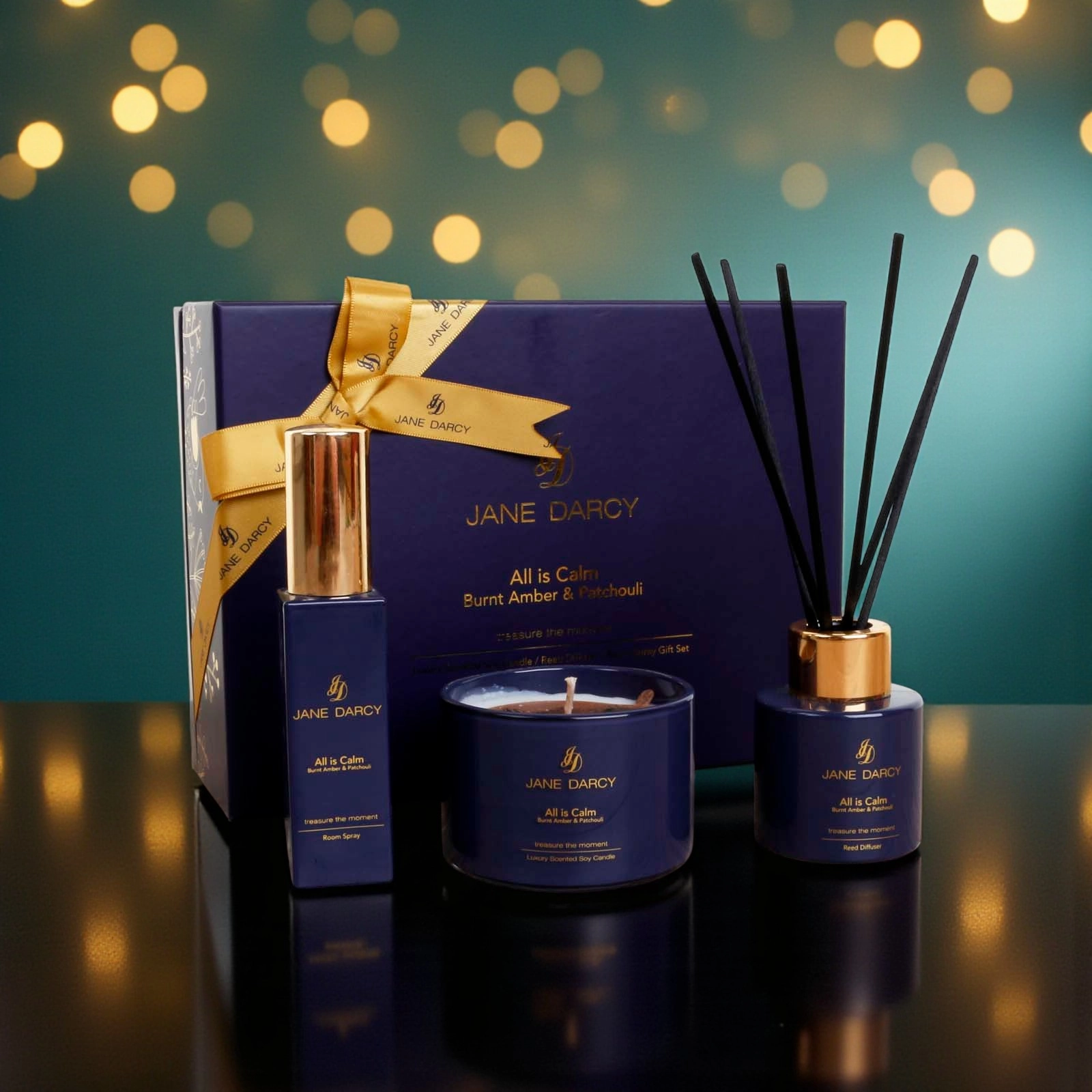 We have created a unique gift set for you to enjoy. Our signature natural soy wax candle, teamed with our renowned luxury reed diffuser and finished with our stunning new room spray. A mini collection of all of your favourites. The perfect gift to create that calm space to relax and unwind.