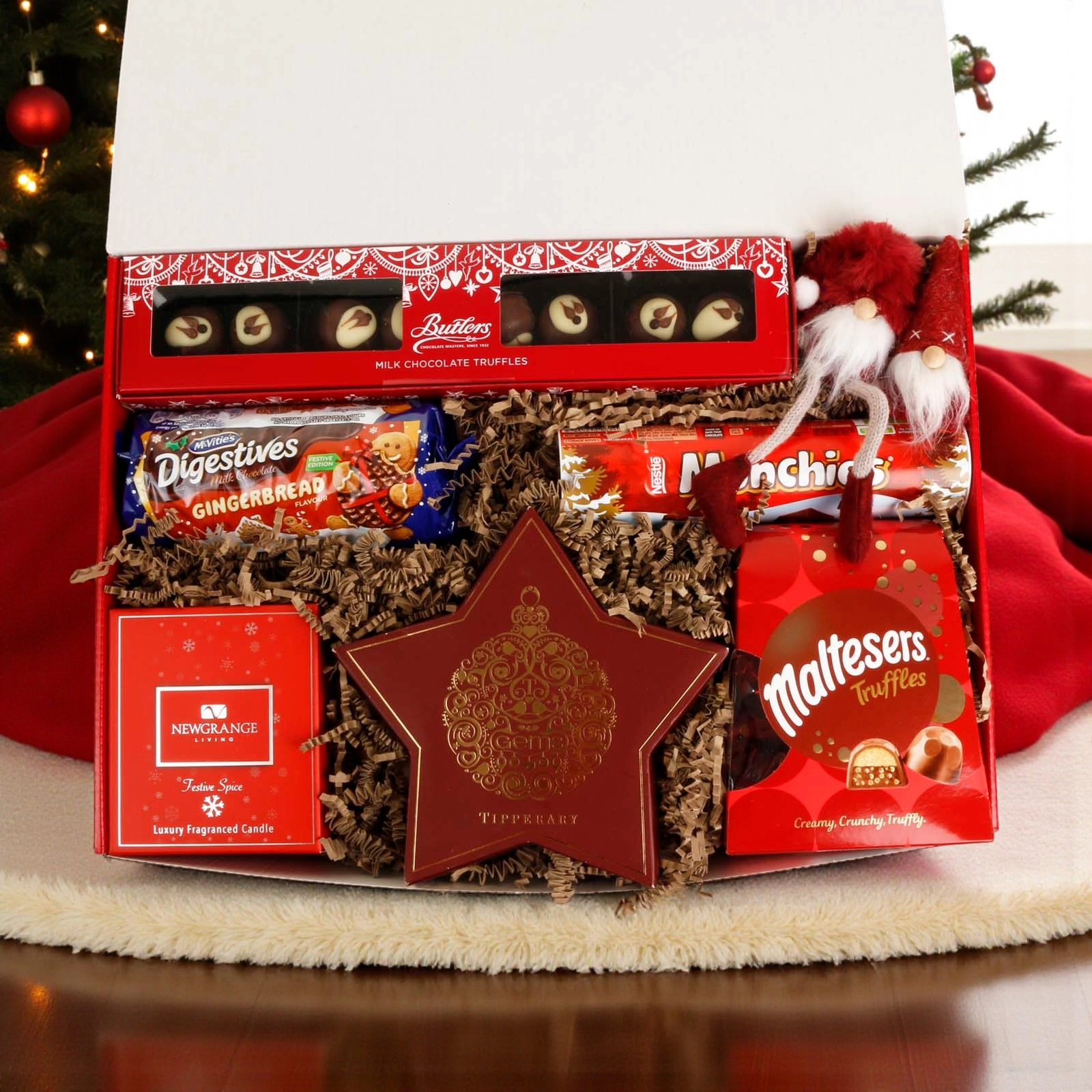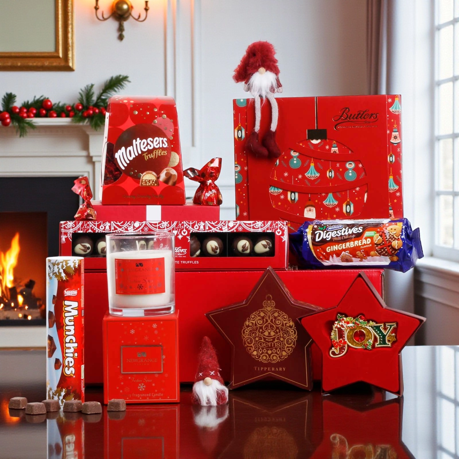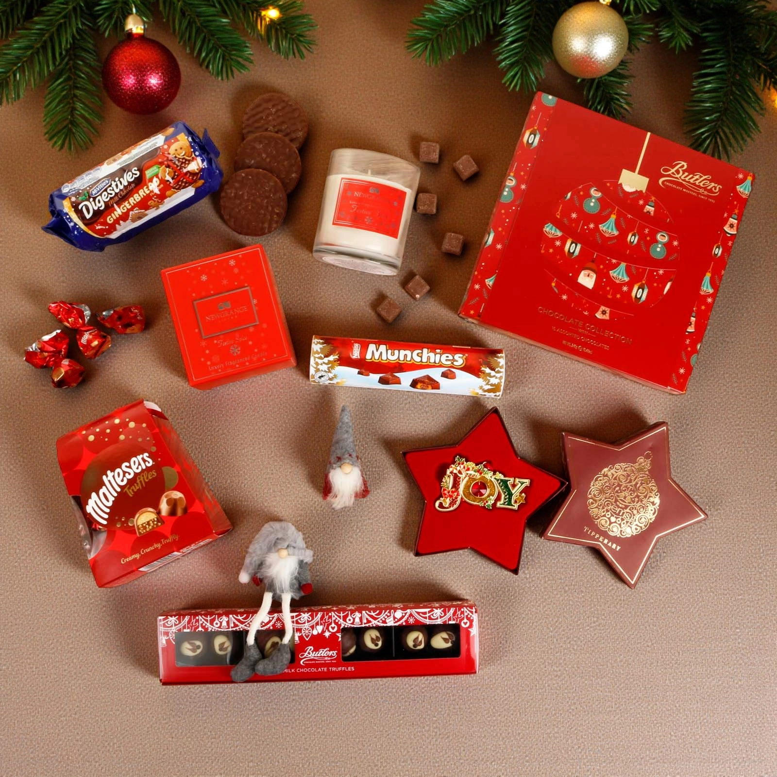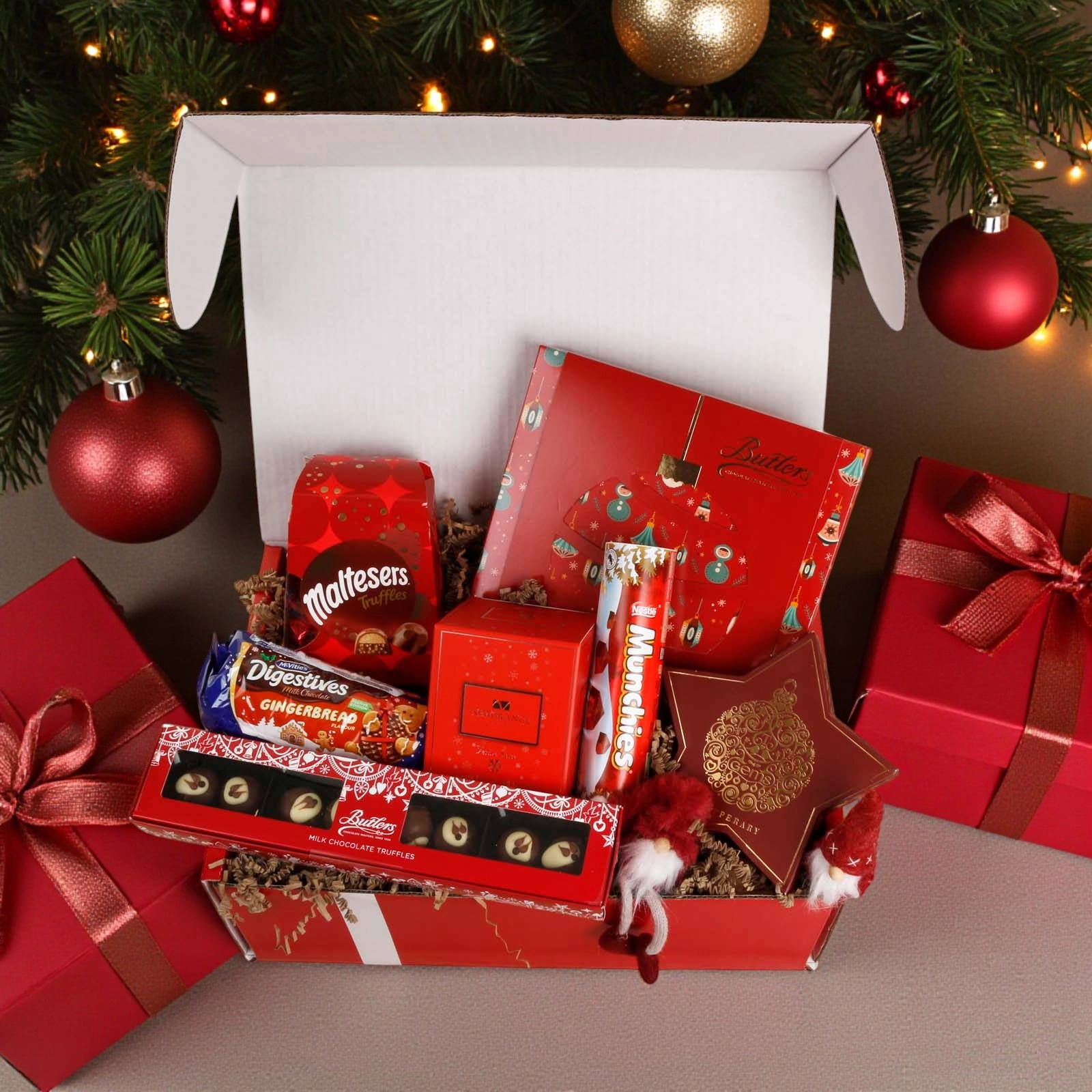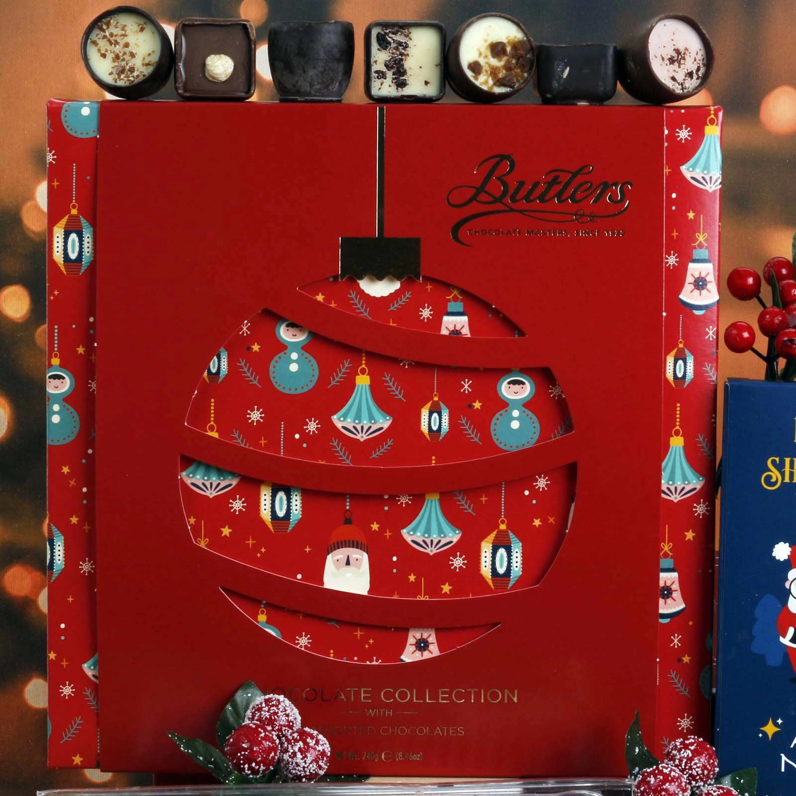 • Butlers Christmas Motif Milk Chocolate Selection (240g) – Decadent assorted chocolates crafted by Ireland’s renowned chocolatier.