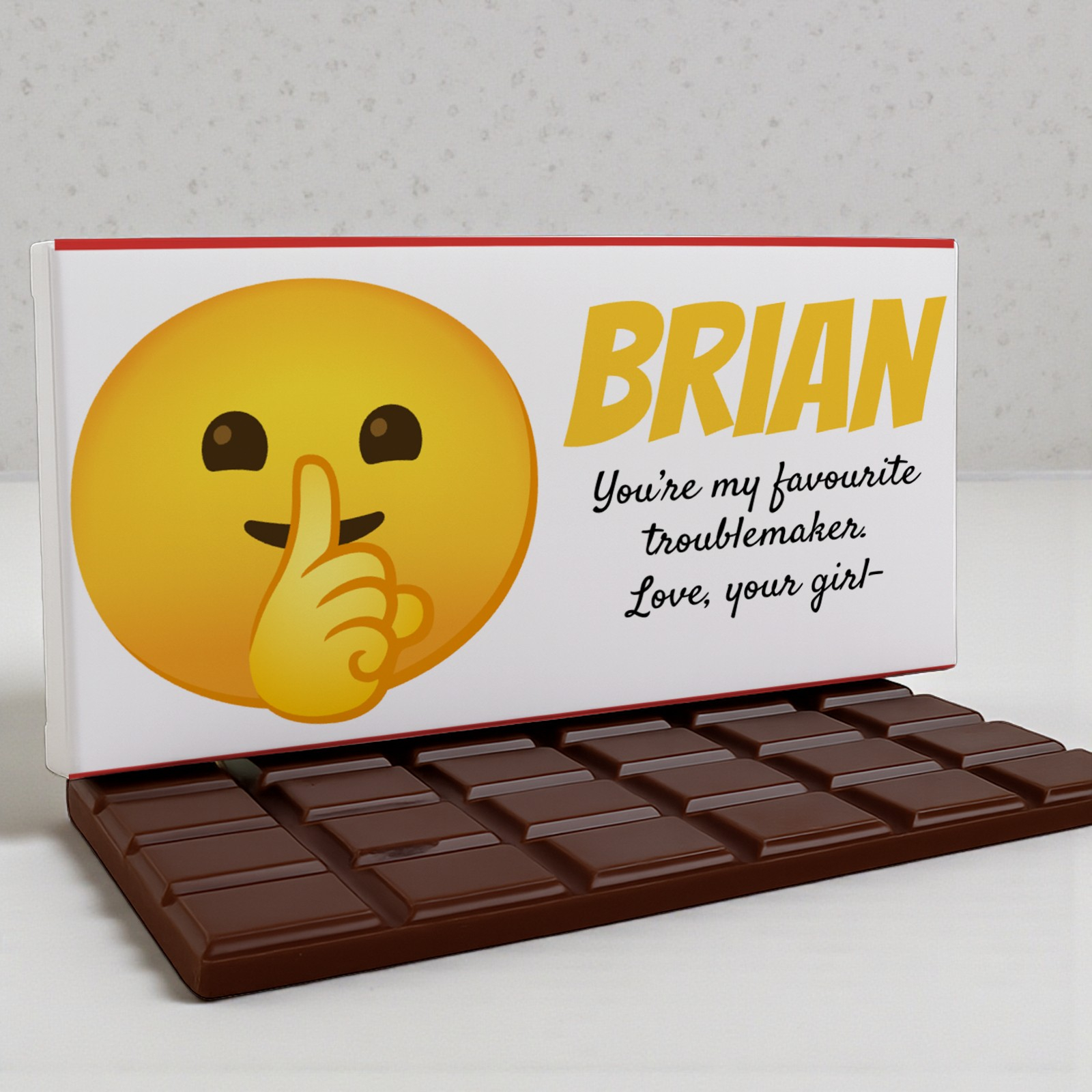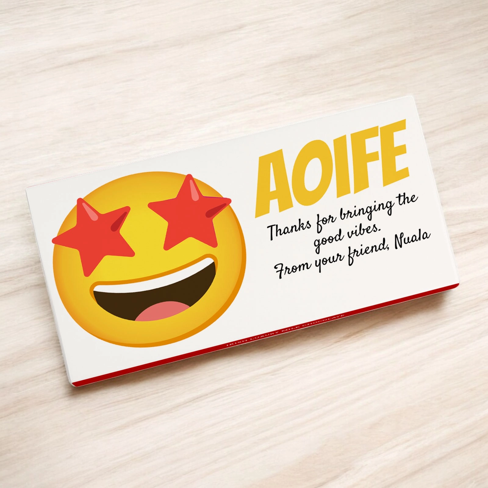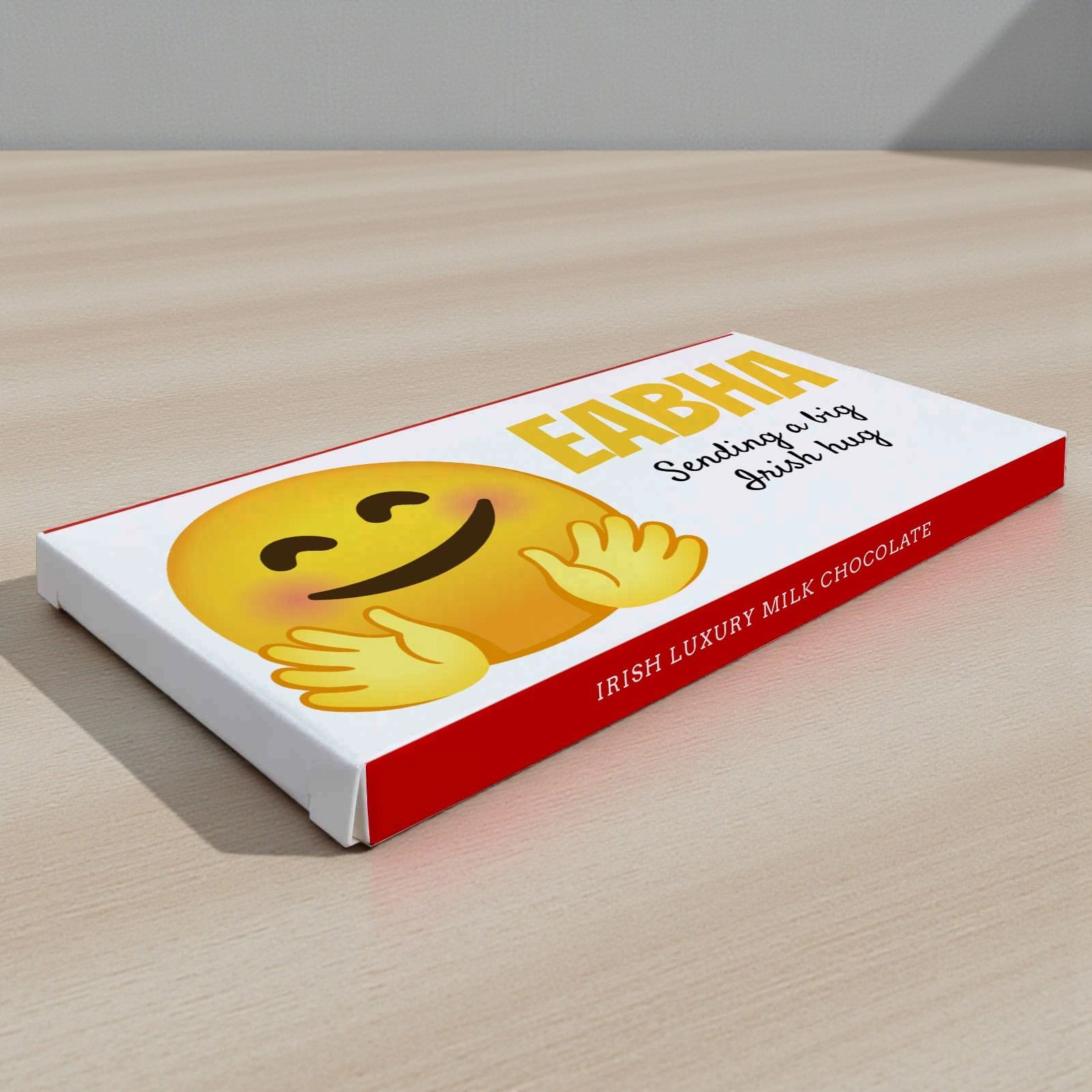 Each chocolate bar is beautifully wrapped in a customised design featuring a fun emoji and your chosen message. Personalise it with a name and a heartfelt note to create a unique gift that'll warm hearts and bring smiles.