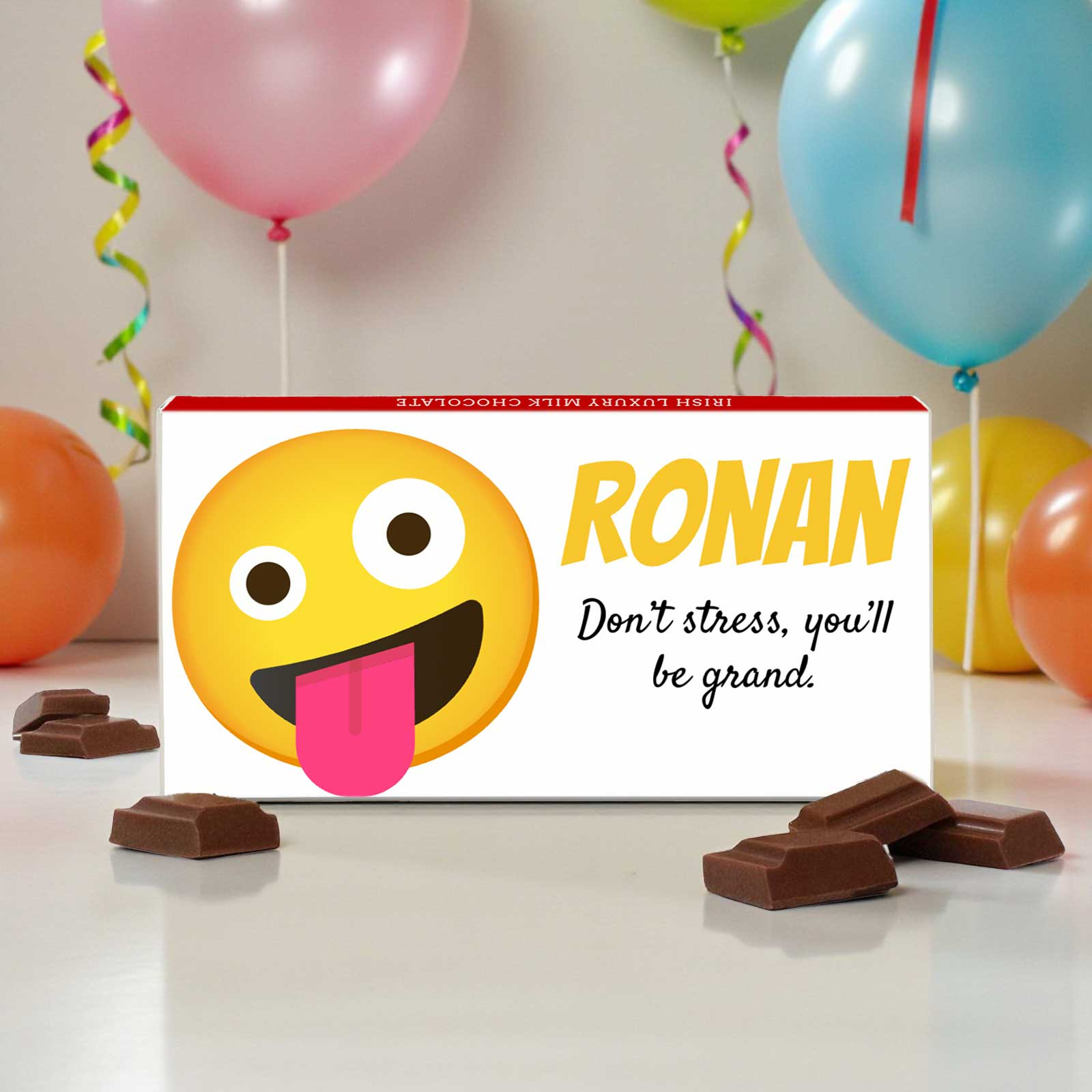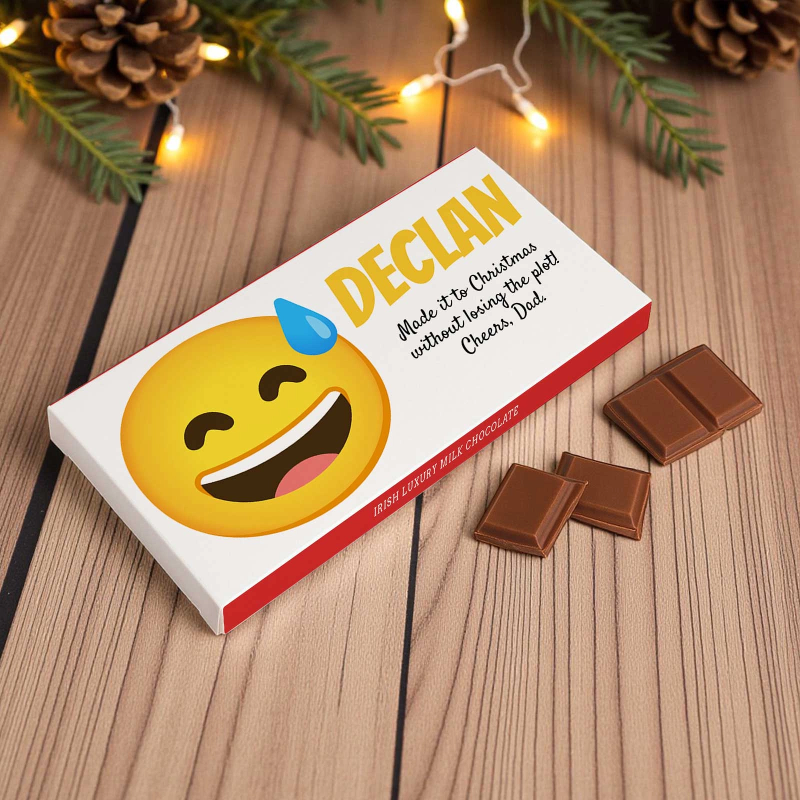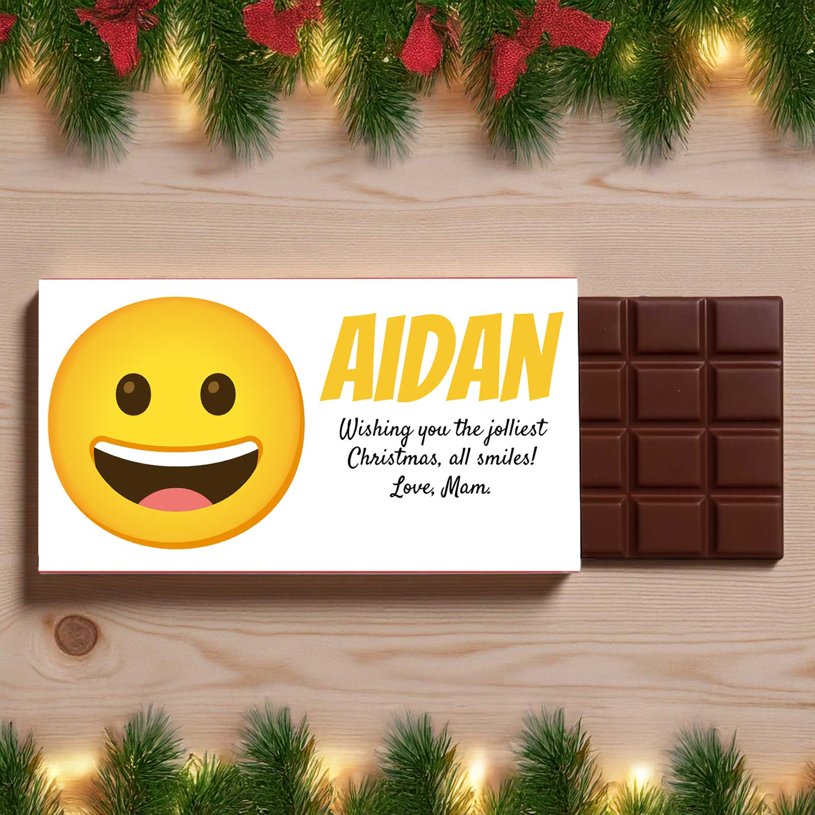 Each chocolate bar is beautifully wrapped in a customised design featuring a fun emoji and your chosen message. Personalise it with a name and a heartfelt note to create a unique gift that'll warm hearts and bring smiles.