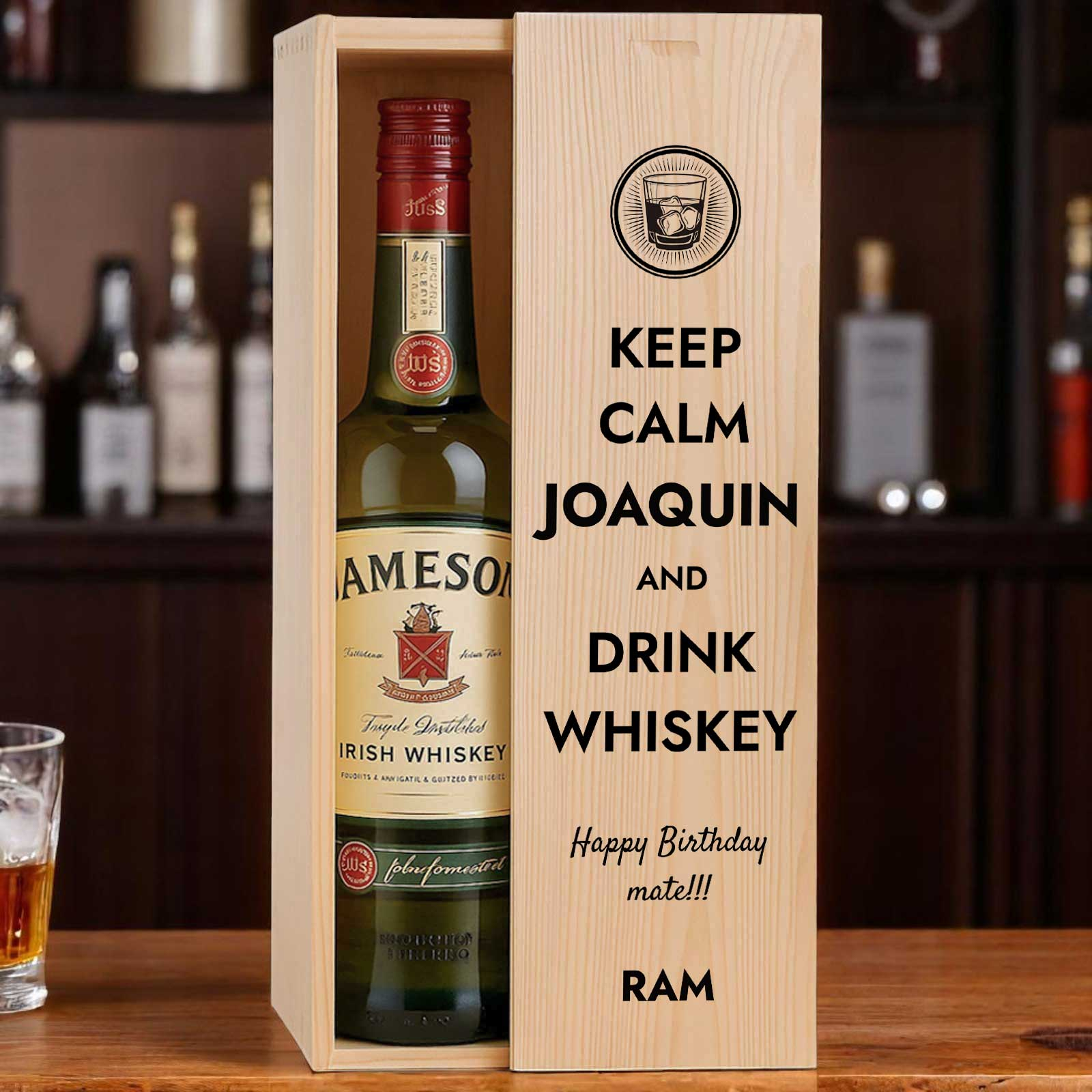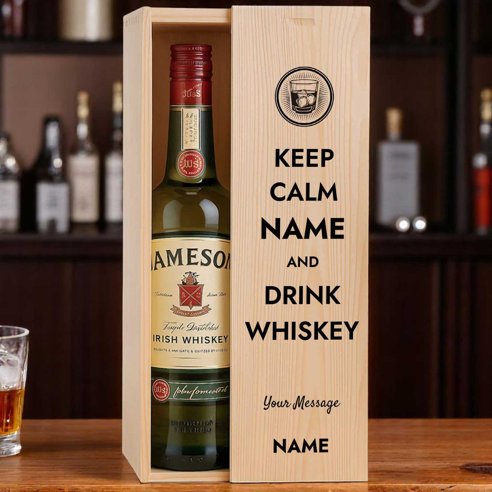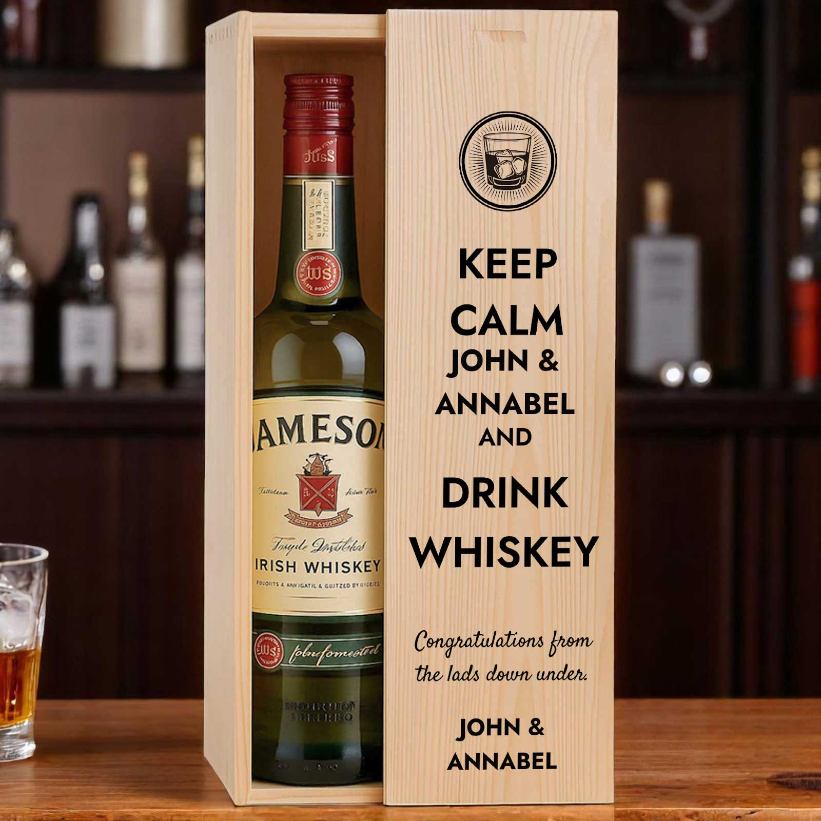 This personalised wooden box with a bottle of whiskey makes the perfect gift for any occasion.