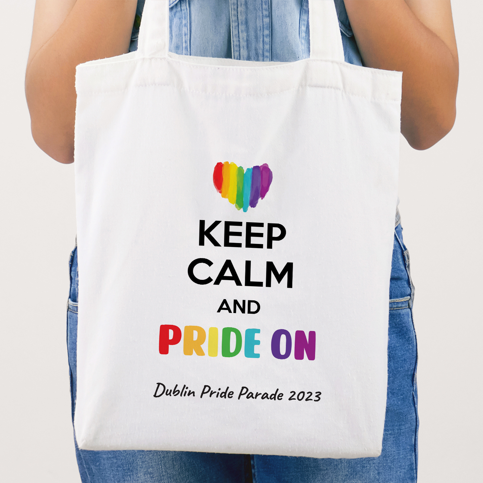 Show your pride and stay calm with our "Keep Calm and Pride On" Personalised Tote Bag.