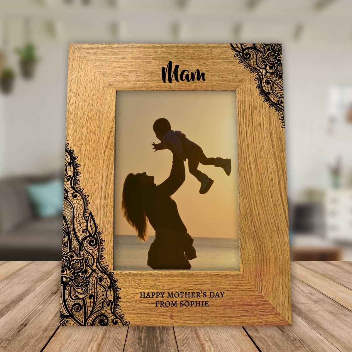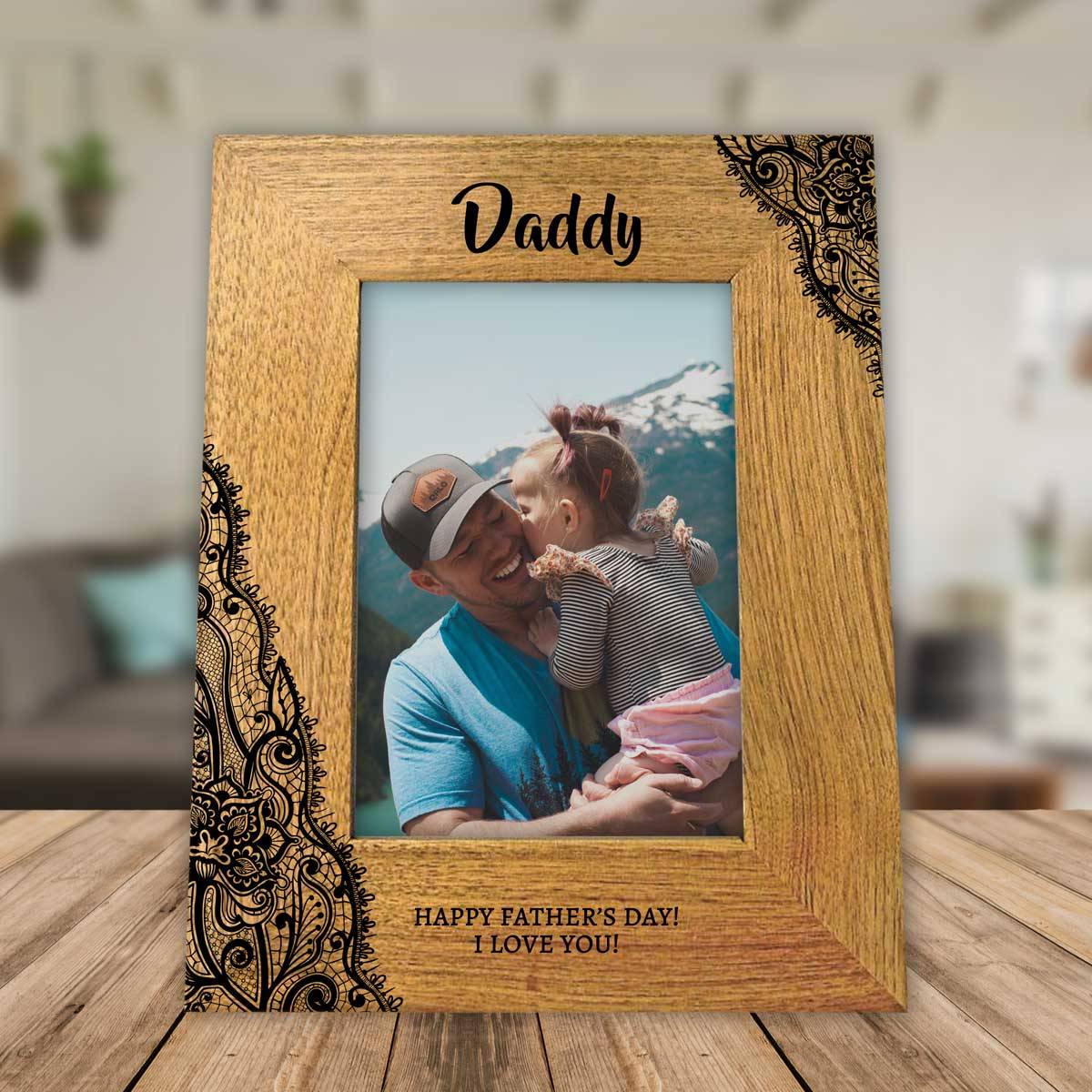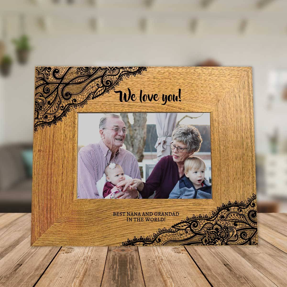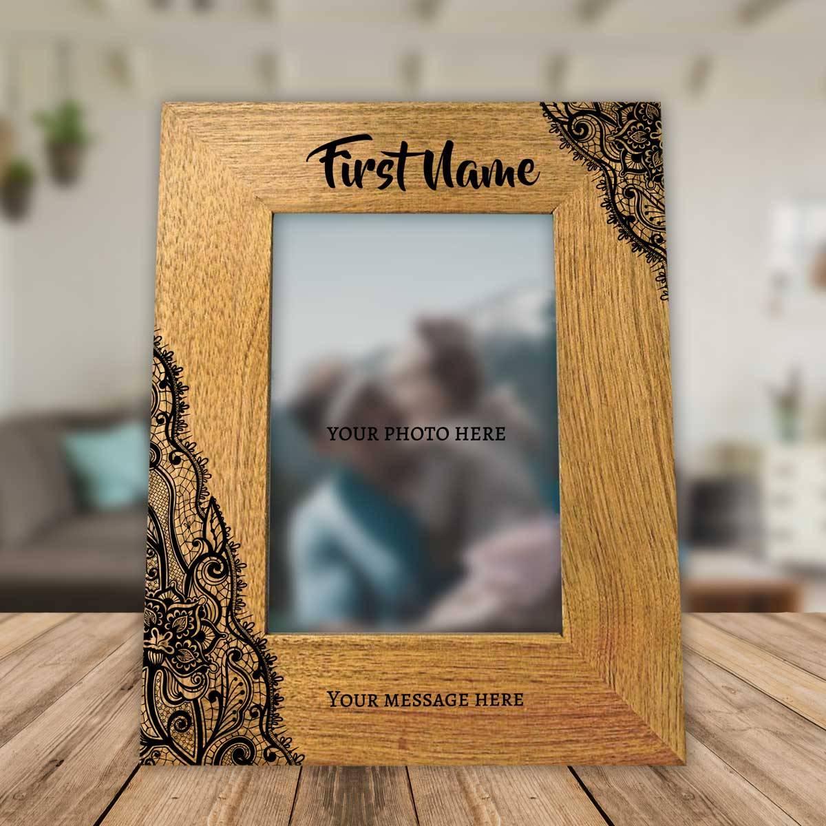 Lace Engraved Any Message Solid Oak Effect Picture Frame