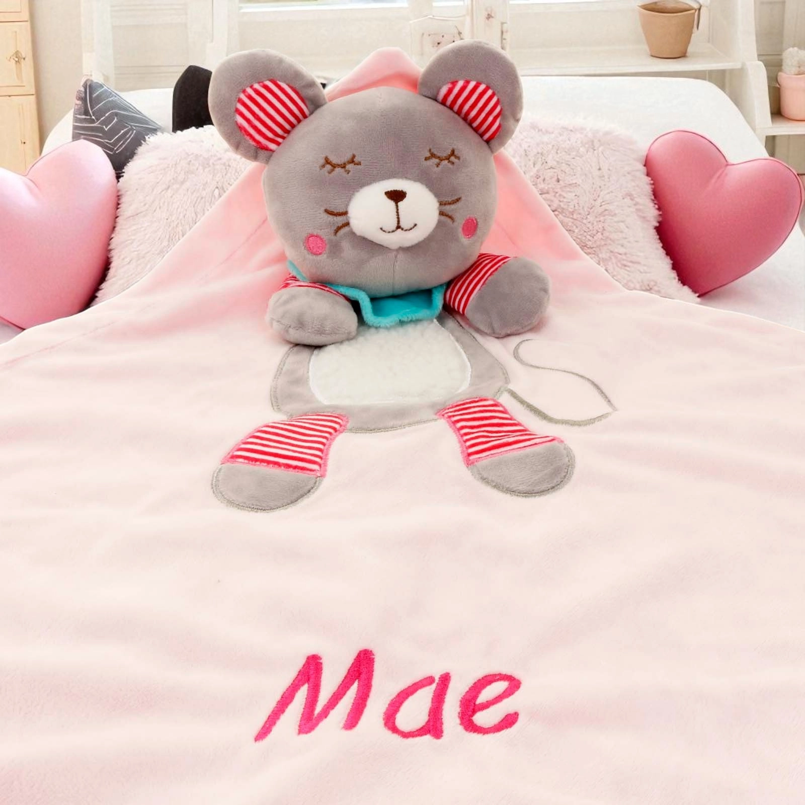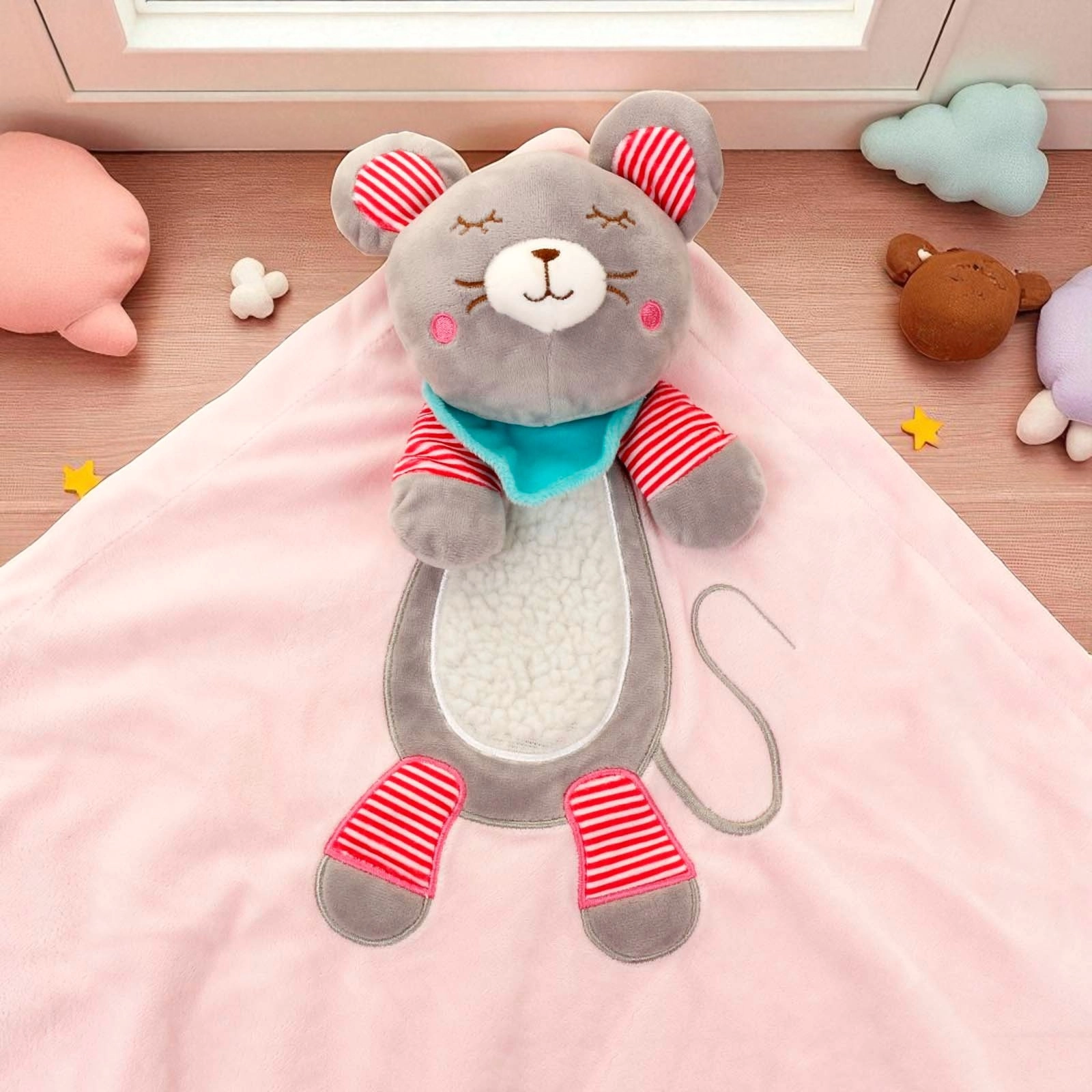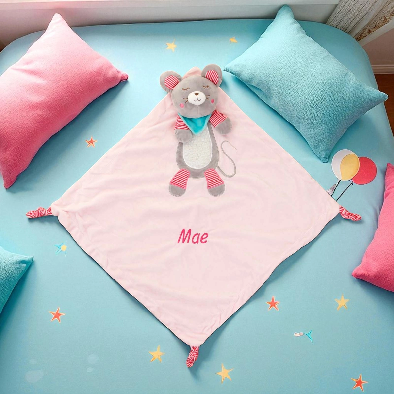 Made in twin layers of soft velour dimple fabric with assorted tags.