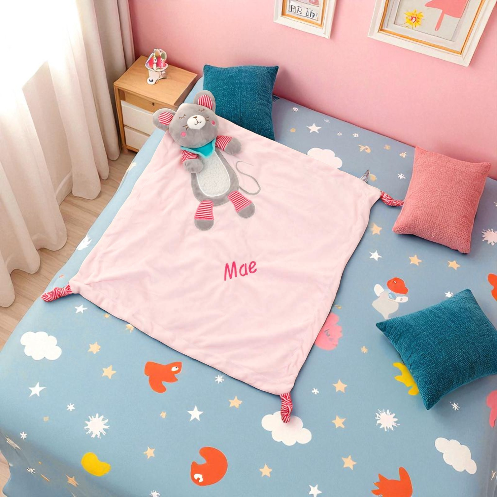 Made in twin layers of soft velour dimple fabric with assorted tags.
