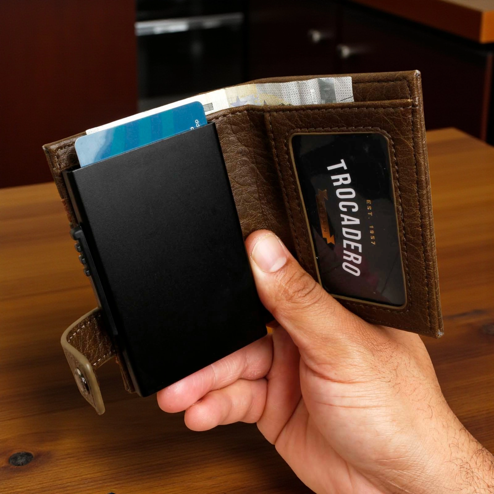 - Spacious & Organised: Multiple card slots, clear ID window, and a large compartment for cash — keeping everything neat and accessible.