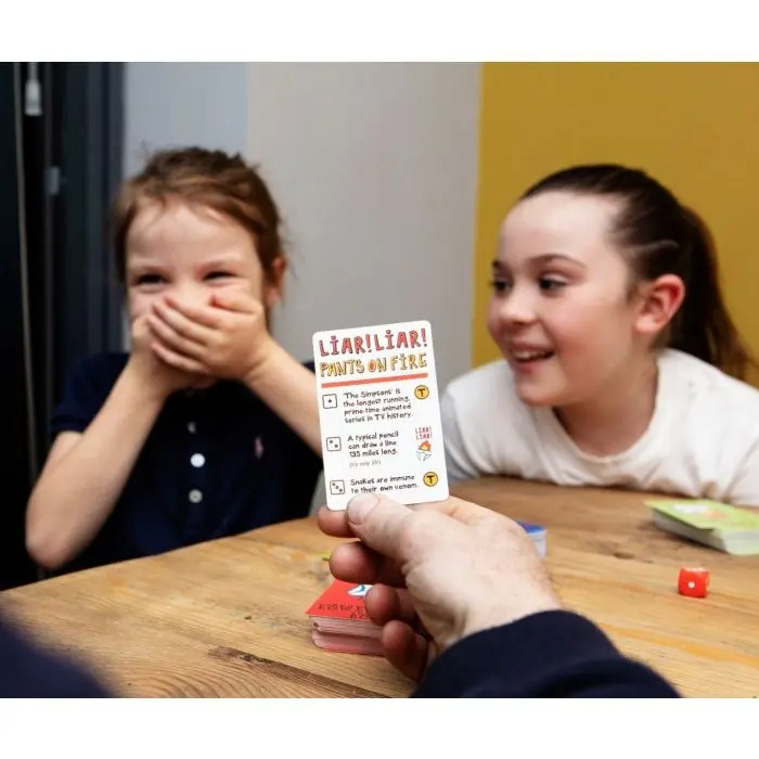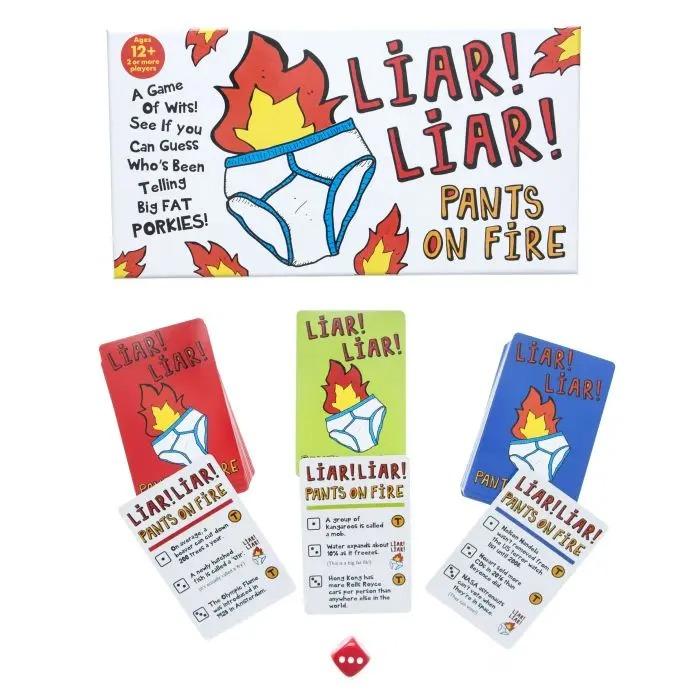 The rules are simple. Simply roll the dice, pick a card and try to convince your fellow players that you’re telling the truth (will anybody call your bluff?). Each entertaining playing card has a selection of true and false facts and when it’s your turn to guess, shout ‘True!’ if you believe it, or ‘Liar! Liar! Pants on fire!’ if you think fibs are being told! With three stacks of cards to choose from, this is the perfect party game for everyone!