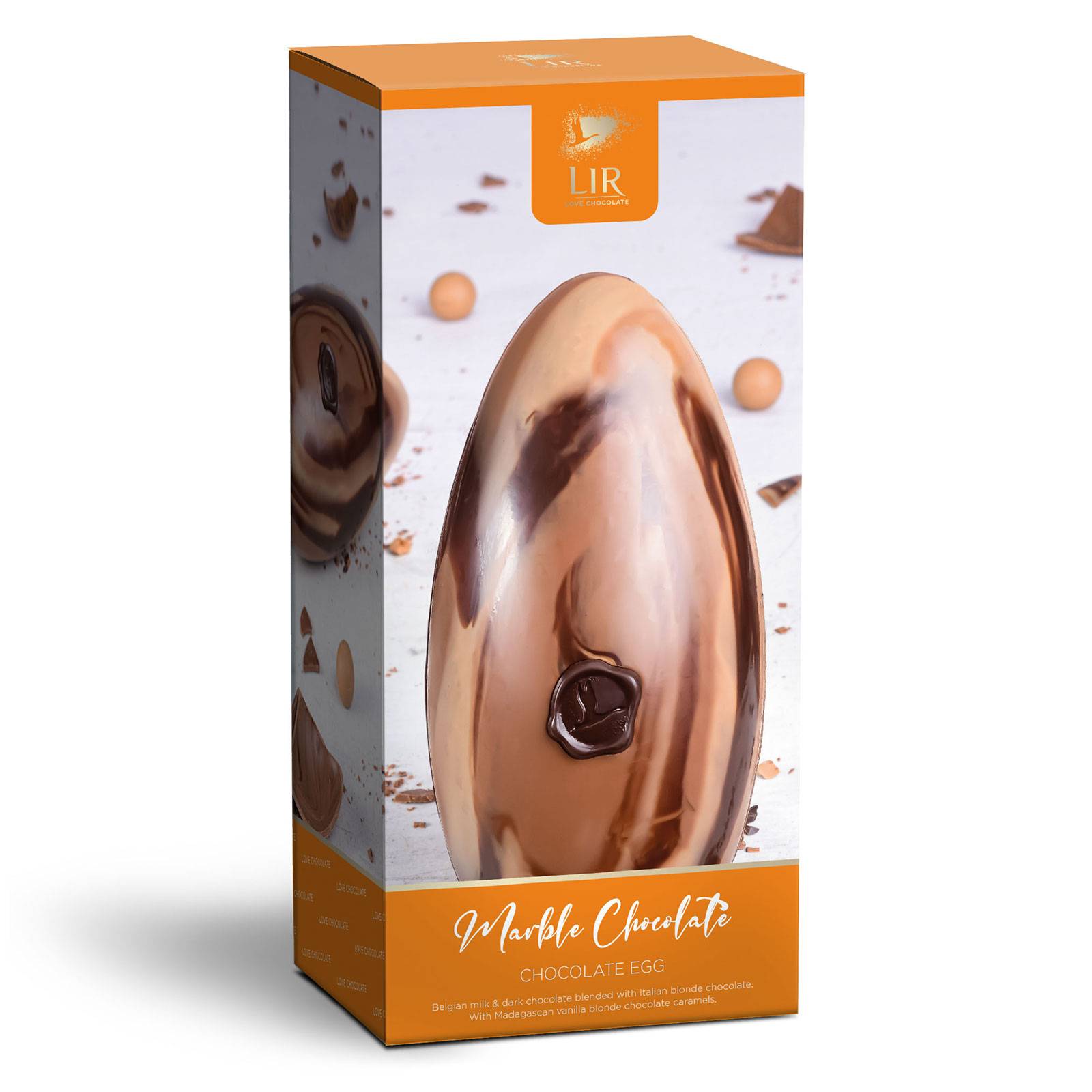 Introducing the Marbeled Egg, a new Easter Egg for Lir Chocolates this year! Belgian milk & dark chocolate blended with Italian blonde chocolate, with Madagascan vanilla blonde chocolate caramels.