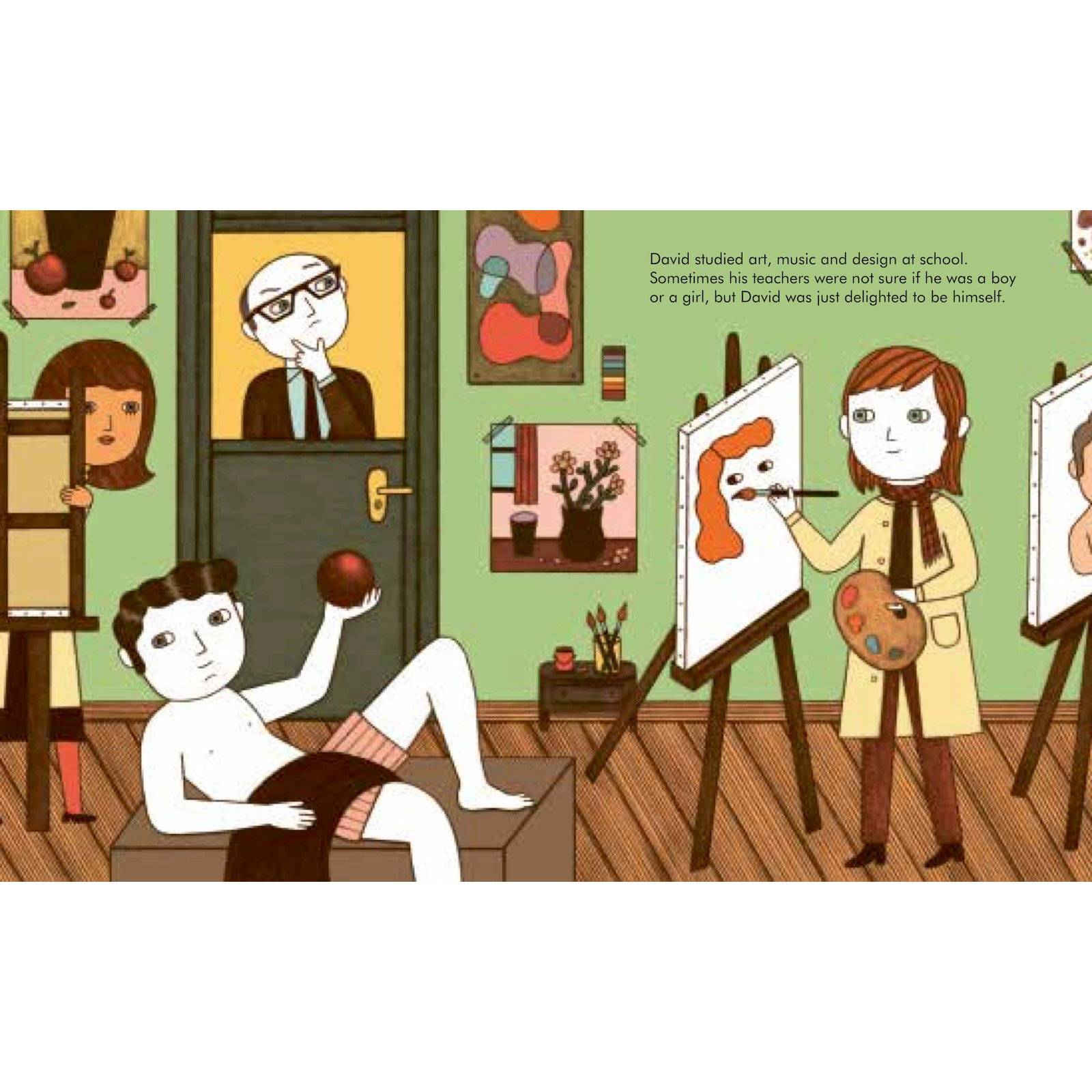 As a child, young David had a head full of songs and ideas. He was inspired by the pop and mod scenes in Britain to pick up the saxophone. After earning his stripes in some of the coolest bands in London, David splashed onto the solo scene. His songwriting talent and musical skill made him one of rock and roll's all-time greatest artists. This moving book features stylish and quirky illustrations and extra facts at the back, including a biographical timeline with historical photos and a detailed profile of the musician's life.