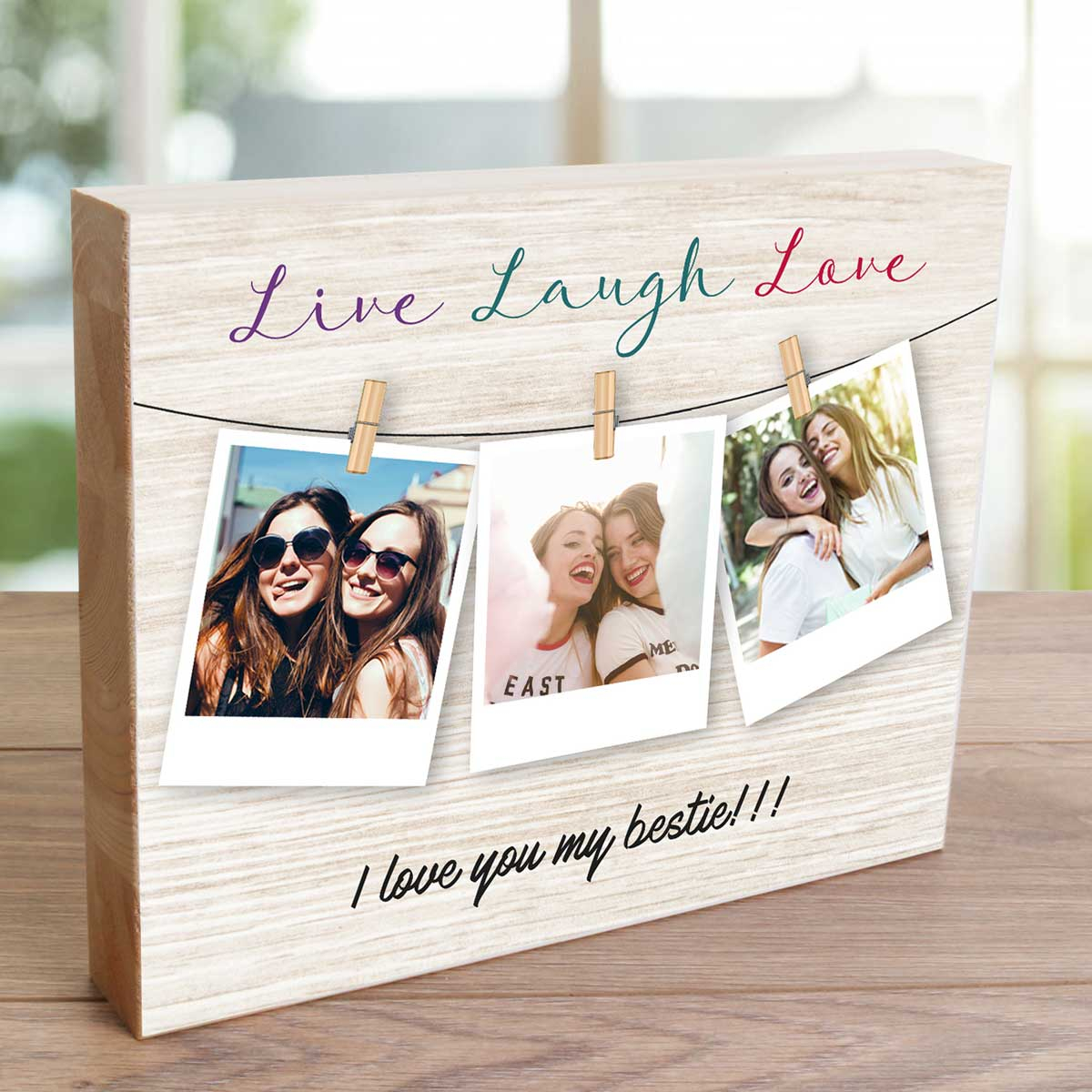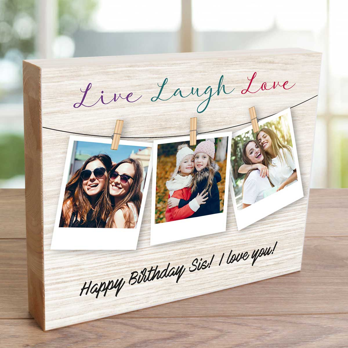Live Laugh And Love Any Photo - Wooden Photo Blocks