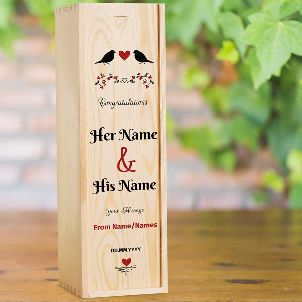 This personalised wooden box with a bottles of Champagne makes the perfect Congratulations gift for any couple - For an engagement, anniversary, new born, etc..