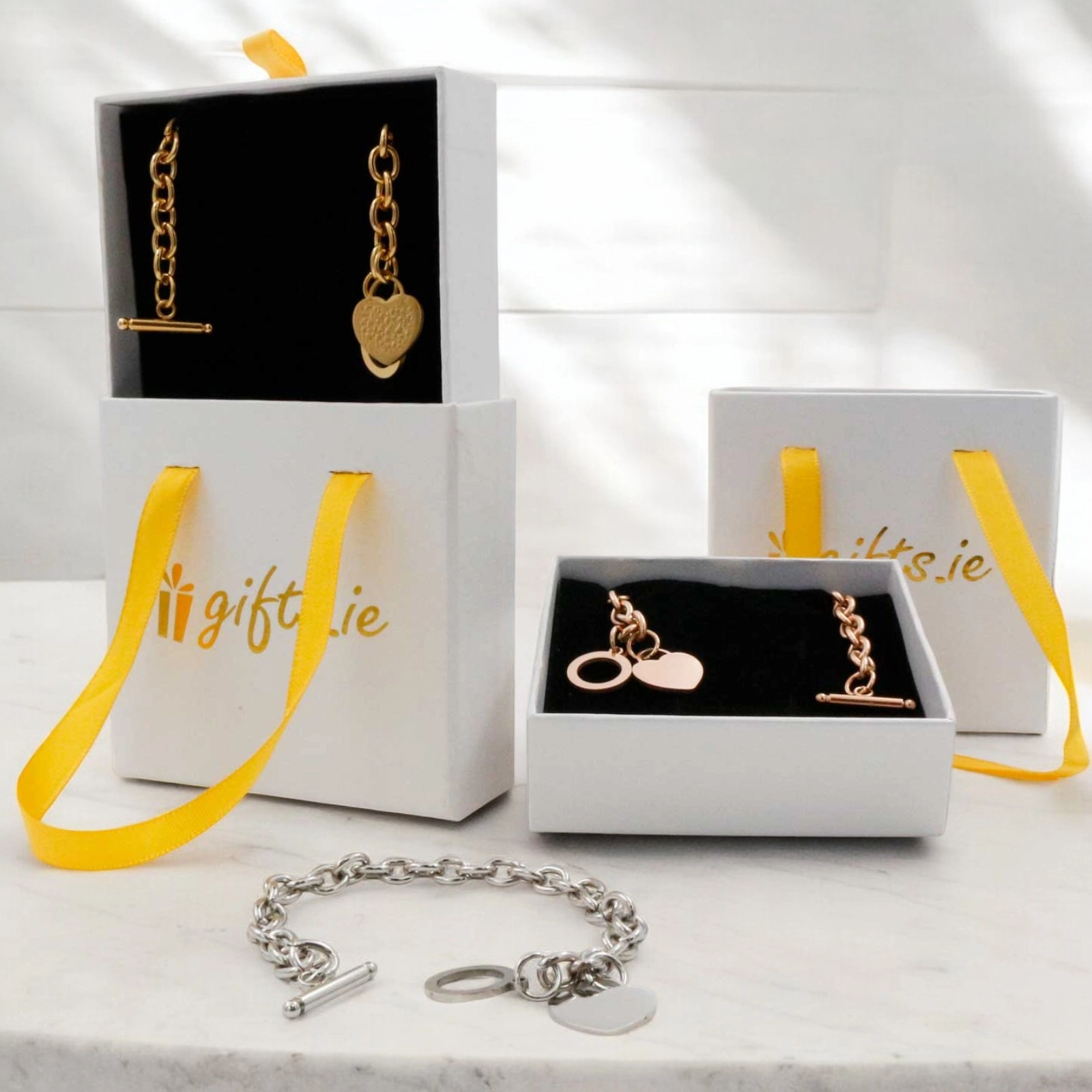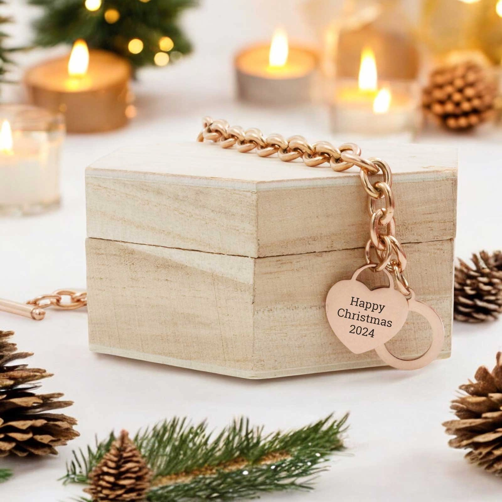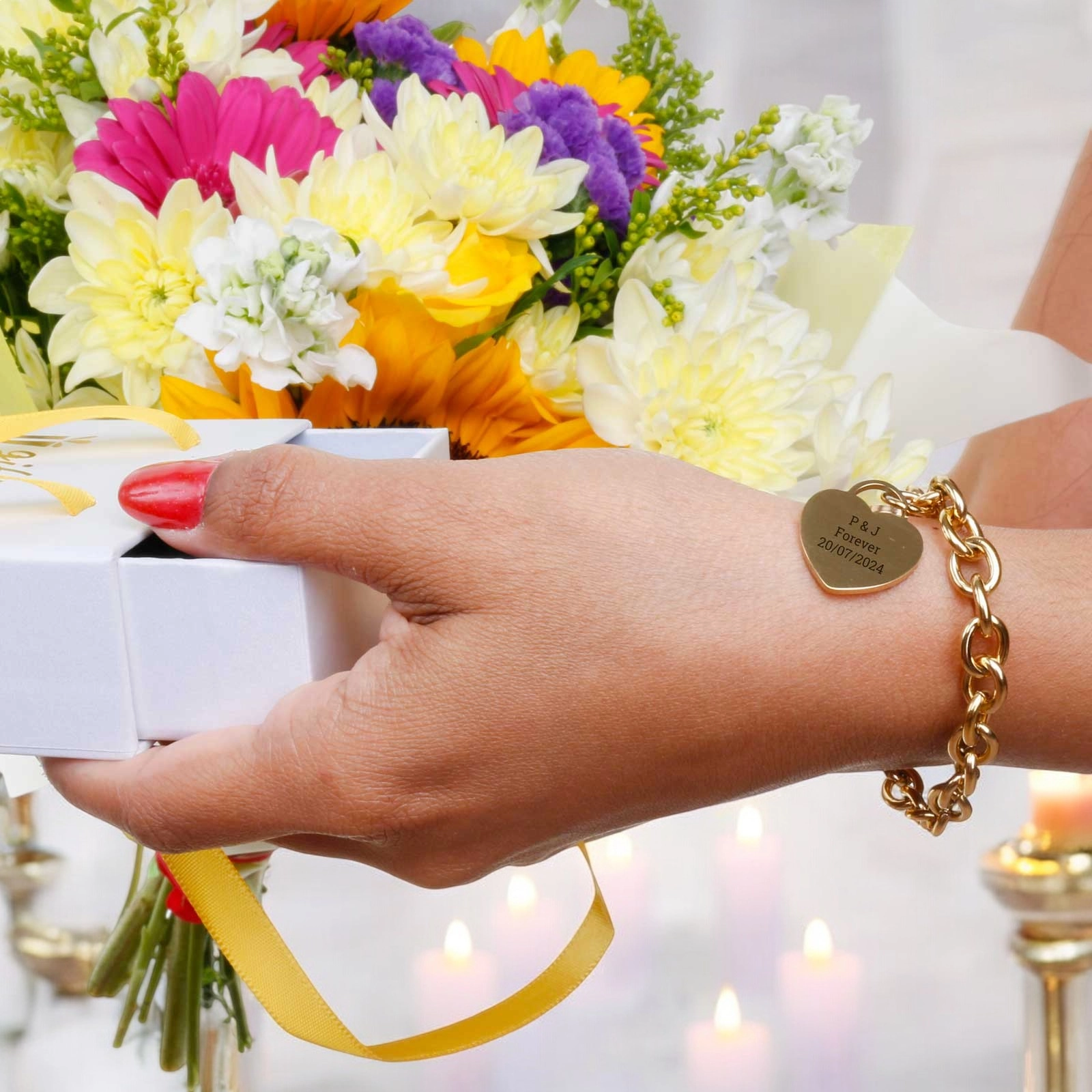 The heart charm detail adds a personalised touch that will fit a date or initials.