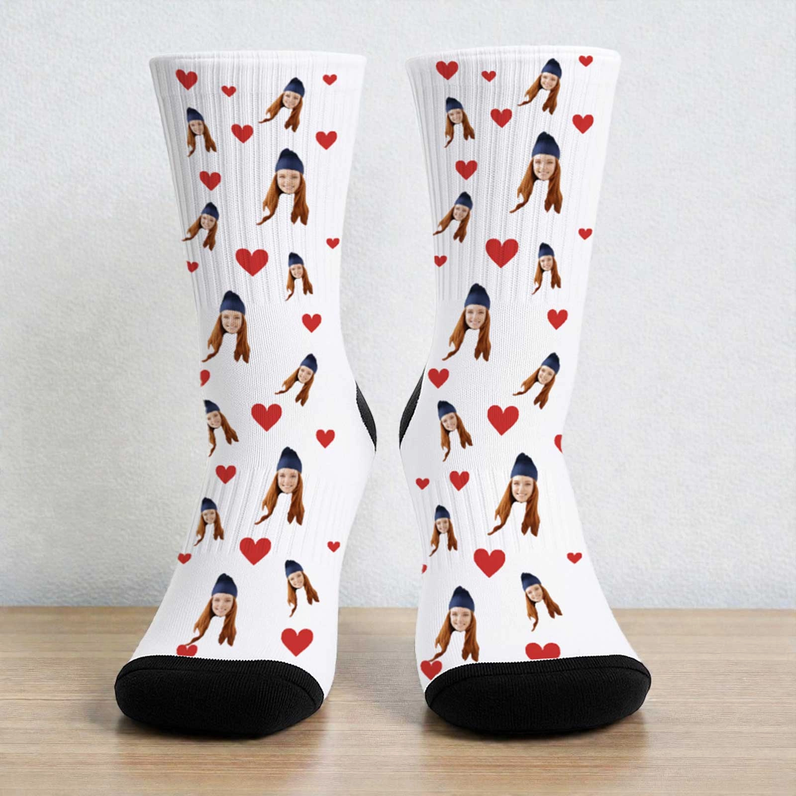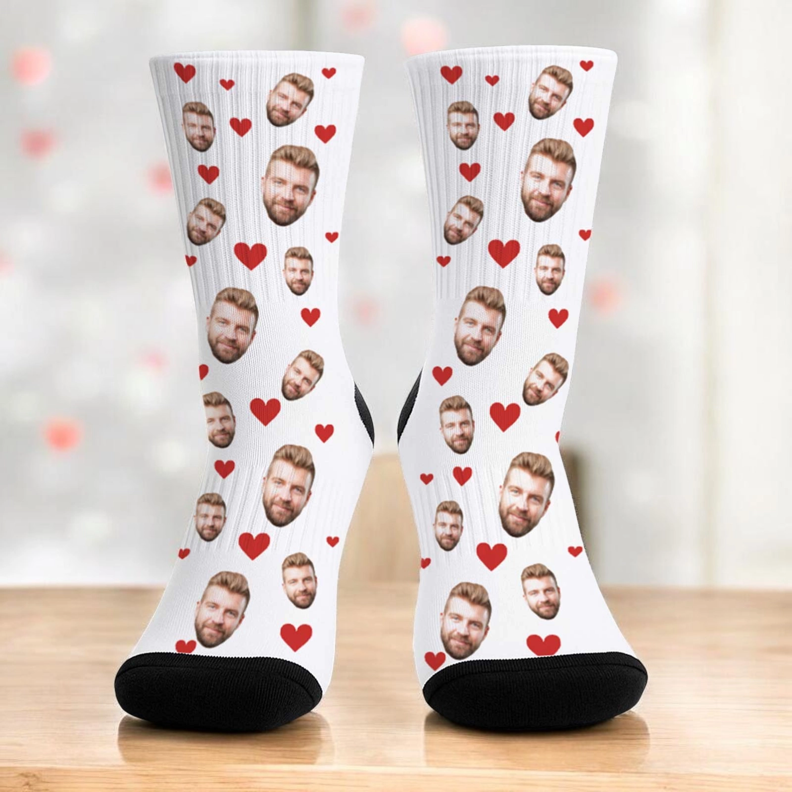 Step into Love and Laughter with Our Personalised Love Heart Face Print Socks!