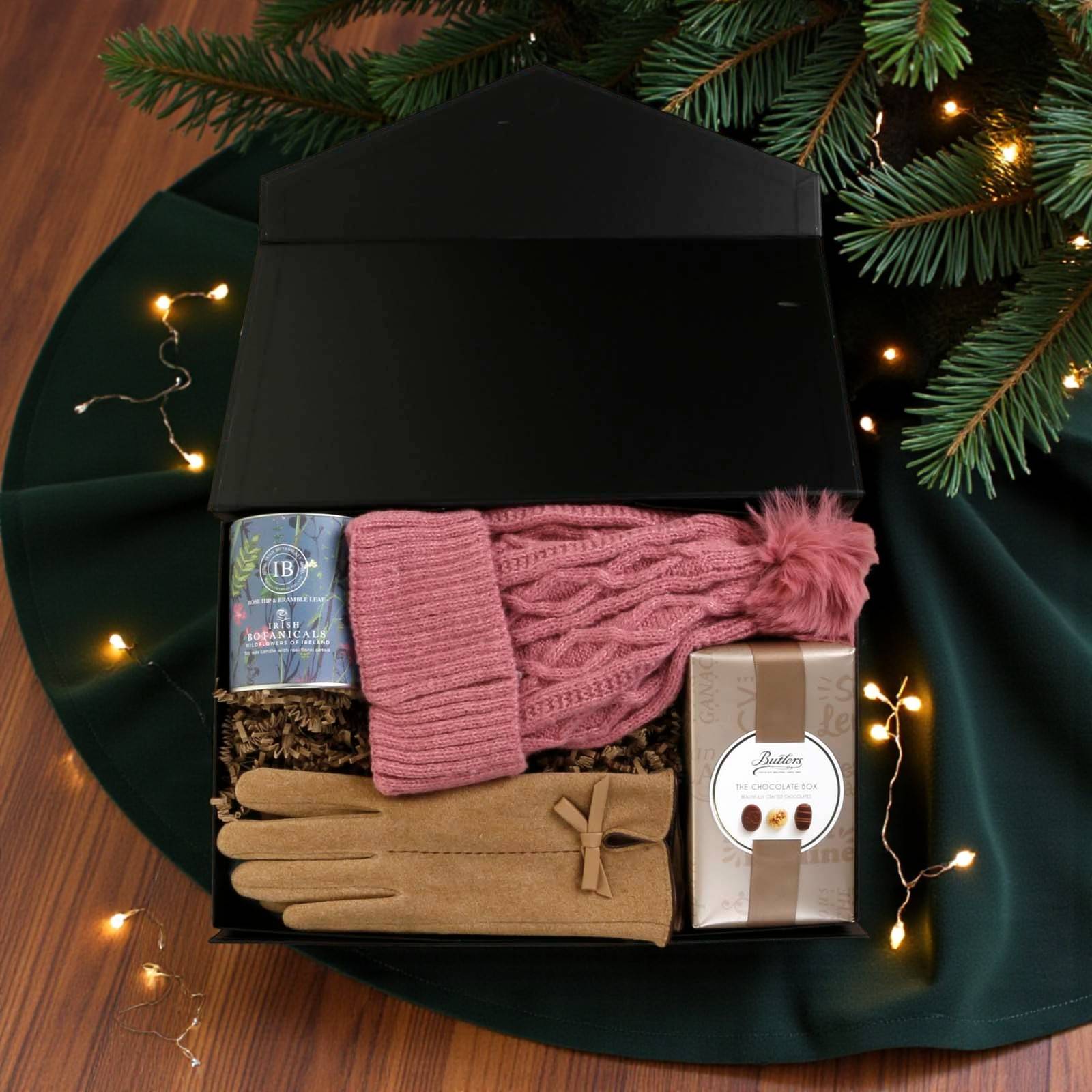 Includes a Irish Botanicals Rosehip & Bramble Leaf Wildflowers Candle and Butler Chocolate Truffles.