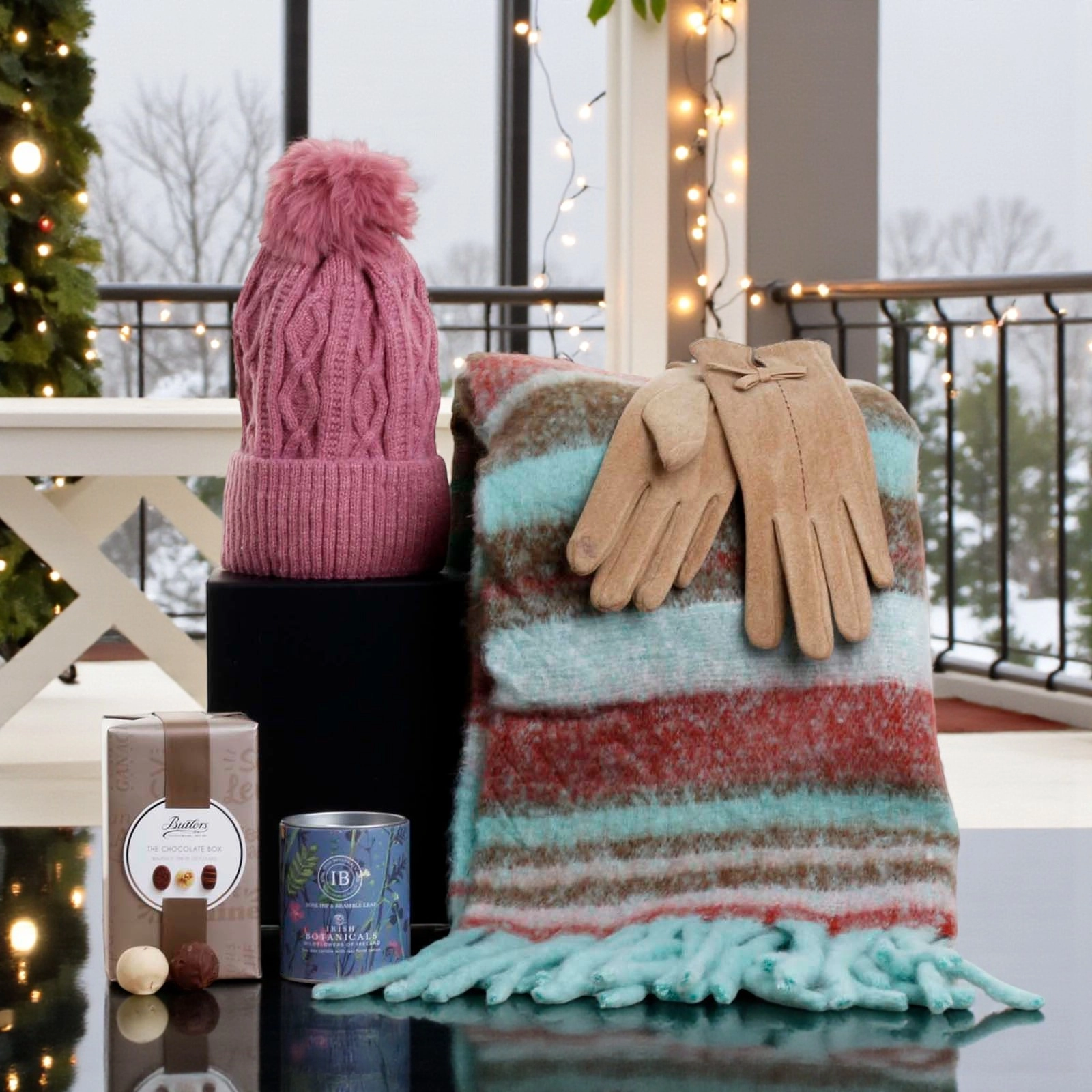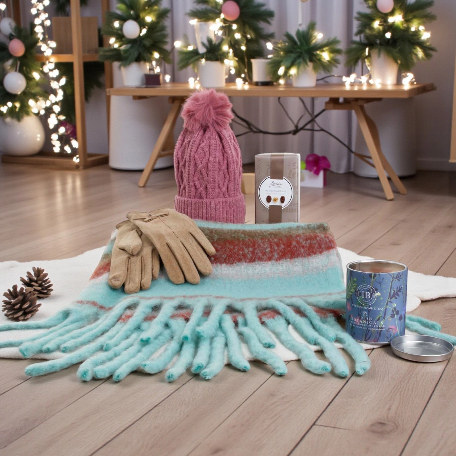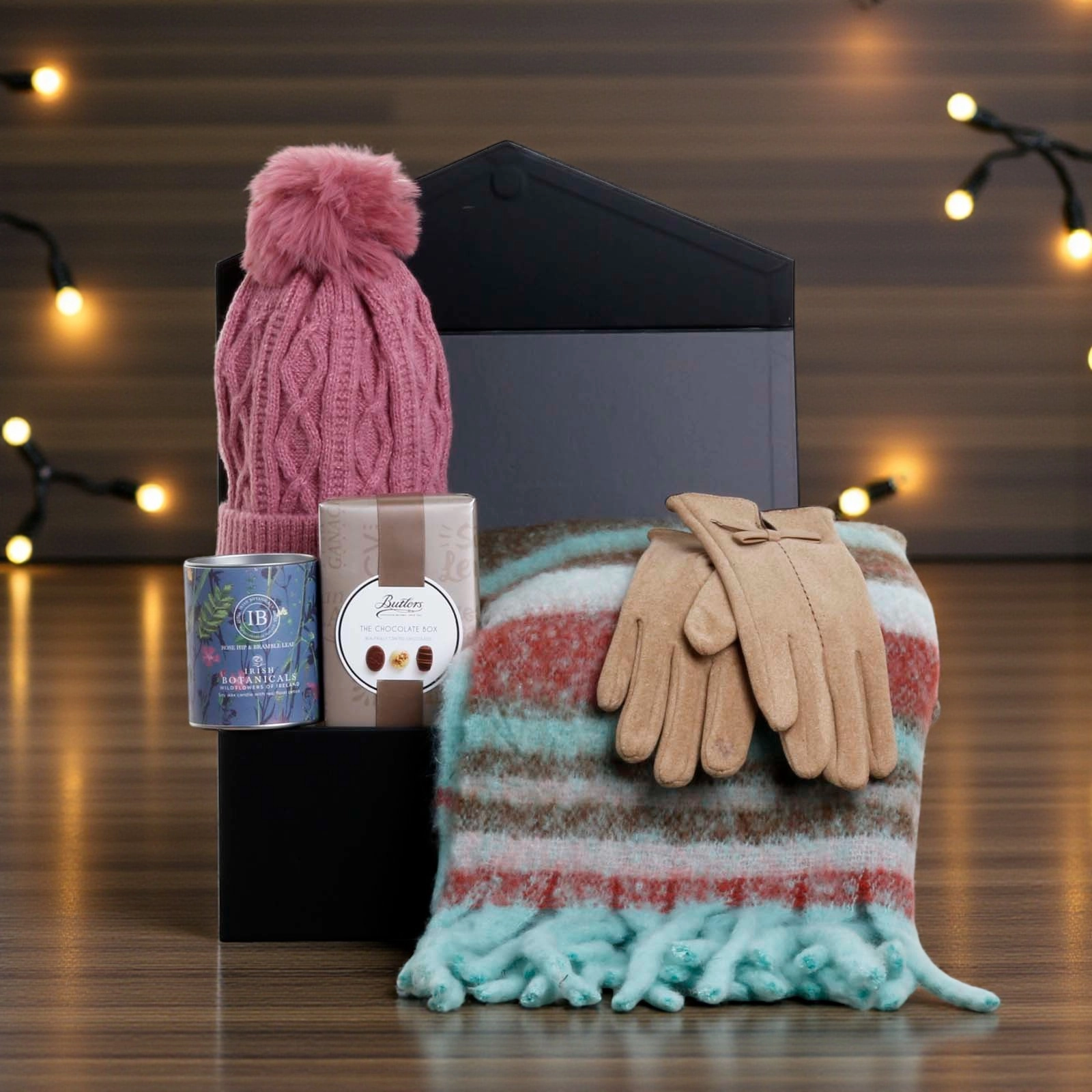 Includes a Irish Botanicals Rosehip & Bramble Leaf Wildflowers Candle and Butler Chocolate Truffles.