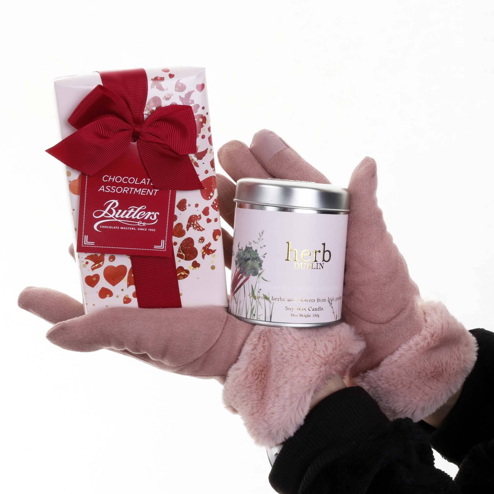Includes a Herb Dublin Rhubarb & Fresh Garden Mint Candle and Butler Chocolate Truffles Hearts.