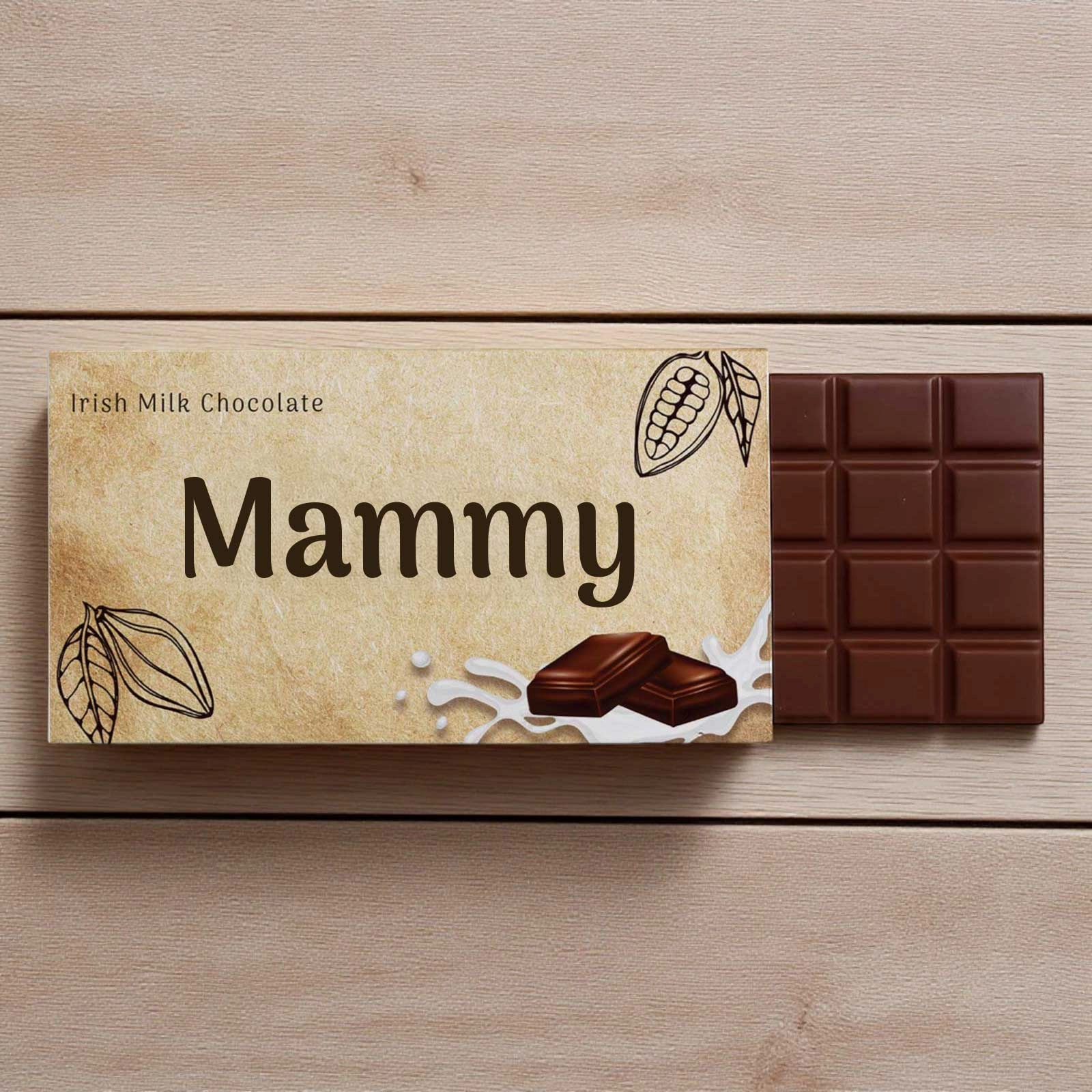Made from high-quality Irish milk chocolate, this 90g bar features a lovely design with the word "Mammy" written in a beautiful font.