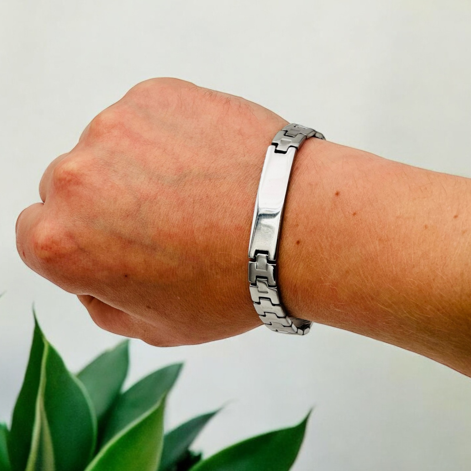 This lovely leather ID style bracelet is the perfect personal gift for a man.