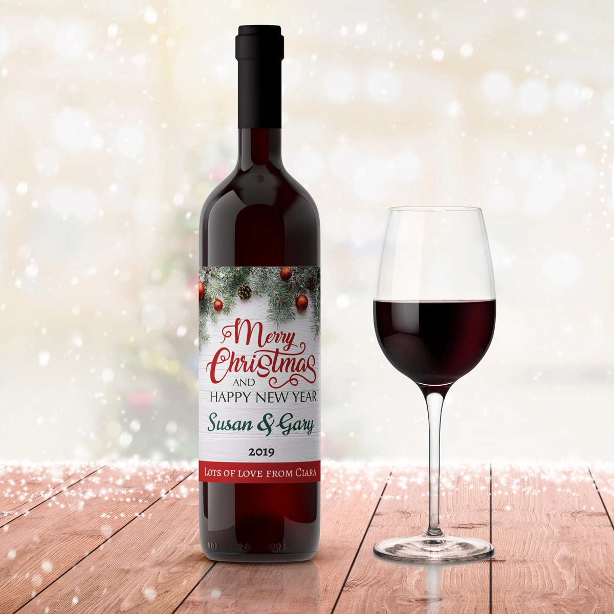This novel bottle of personalised wine is truly a great gift to celebrate and commemorate Christmas. Simply complete the details and we'll have the wine label custom printed with your personalised details.