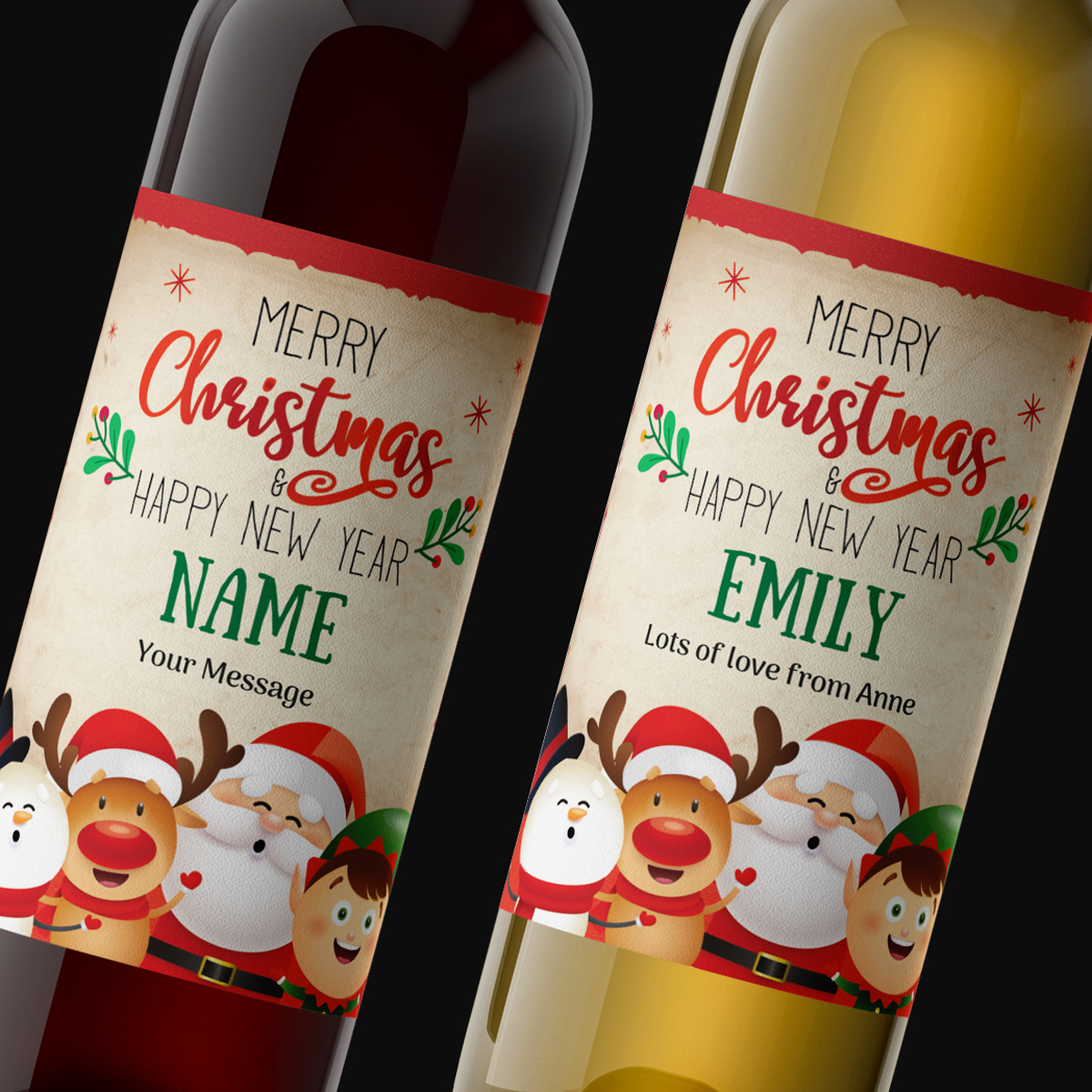 This novel bottle of personalised wine is truly a great gift to celebrate and commemorate Christmas. Simply complete the details and we'll have the wine label custom printed with your personalised details.