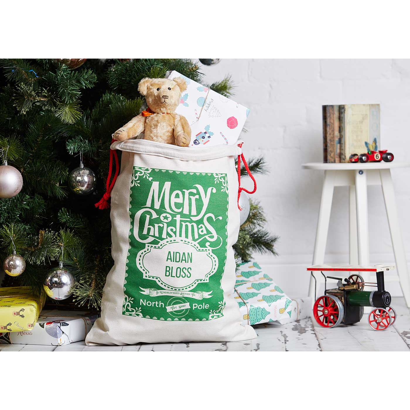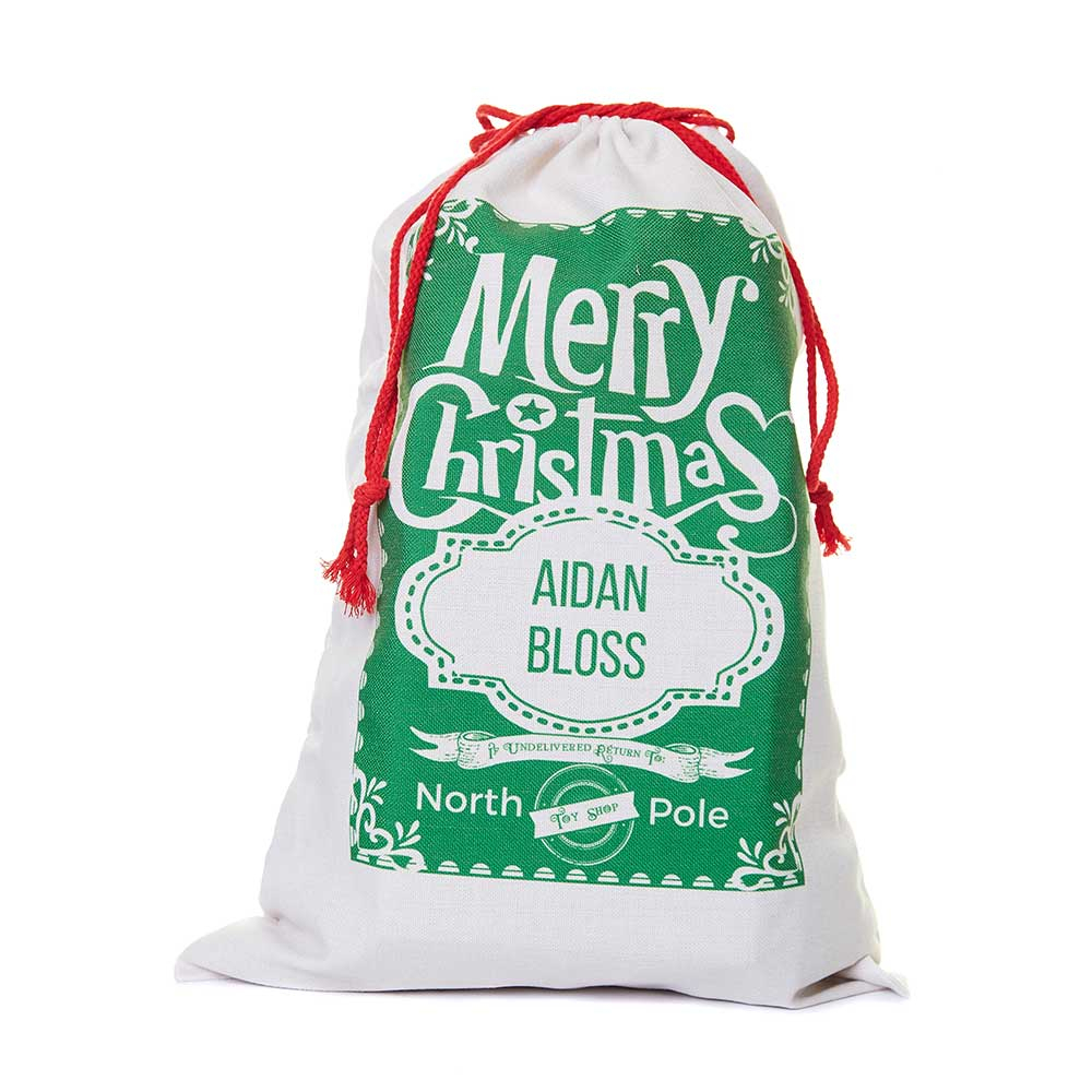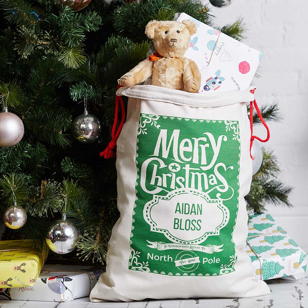 These beautifully designed personalised Santa Sacks will be enjoyed for many years. An alternative to a Christmas stocking, the sack is personalised with the recipient's name.