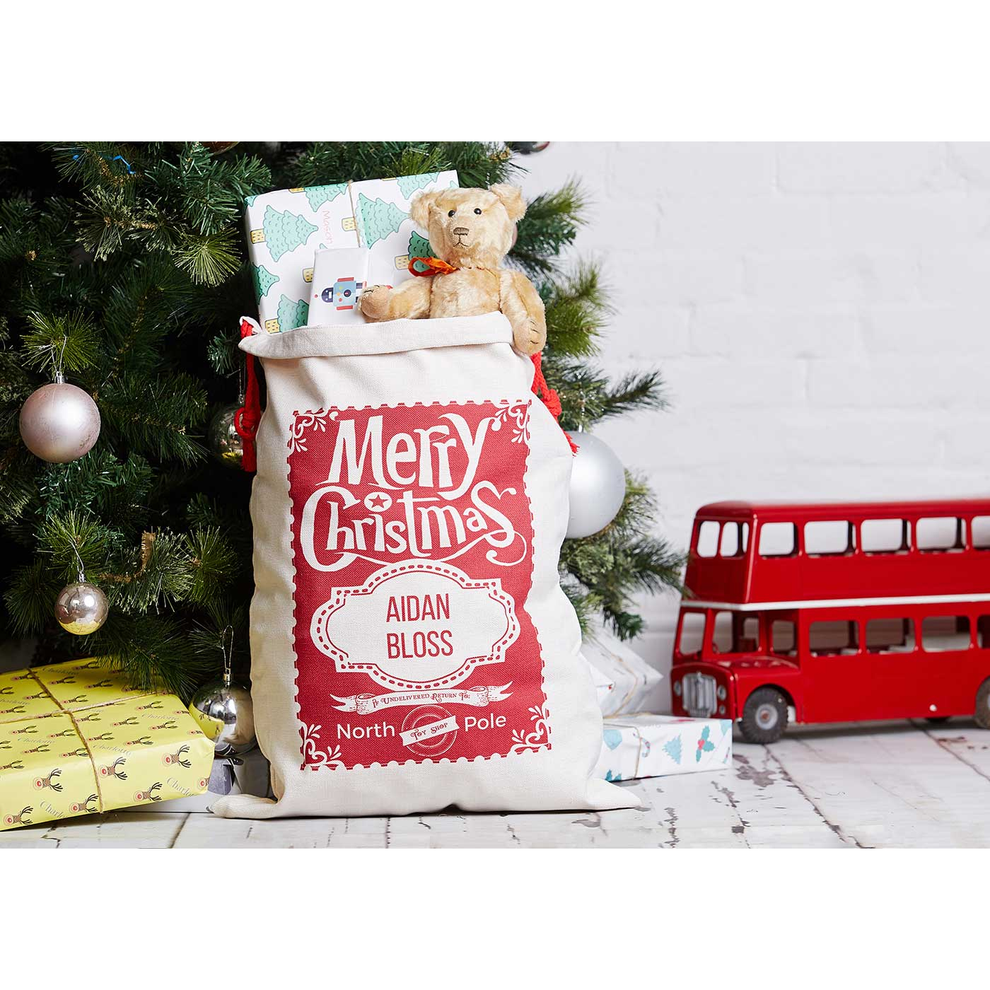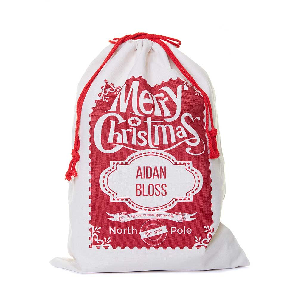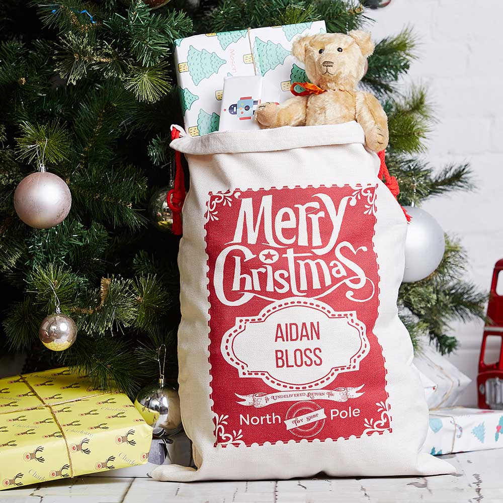 These beautifully designed personalised Santa Sacks will be enjoyed for many years. An alternative to a Christmas stocking, the sack is personalised with the recipient's name.