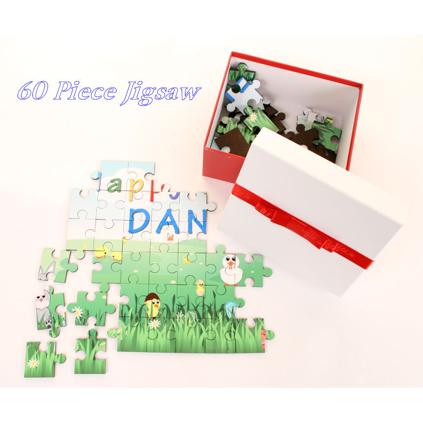 We personalise our high-gloss wooden-back jigsaws with your recipient's name and a message of your choice.