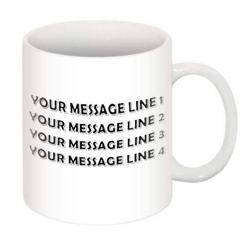 Your own chosen text is personalised on one side of the mug (4 lines, each a maximum of 24 characters).