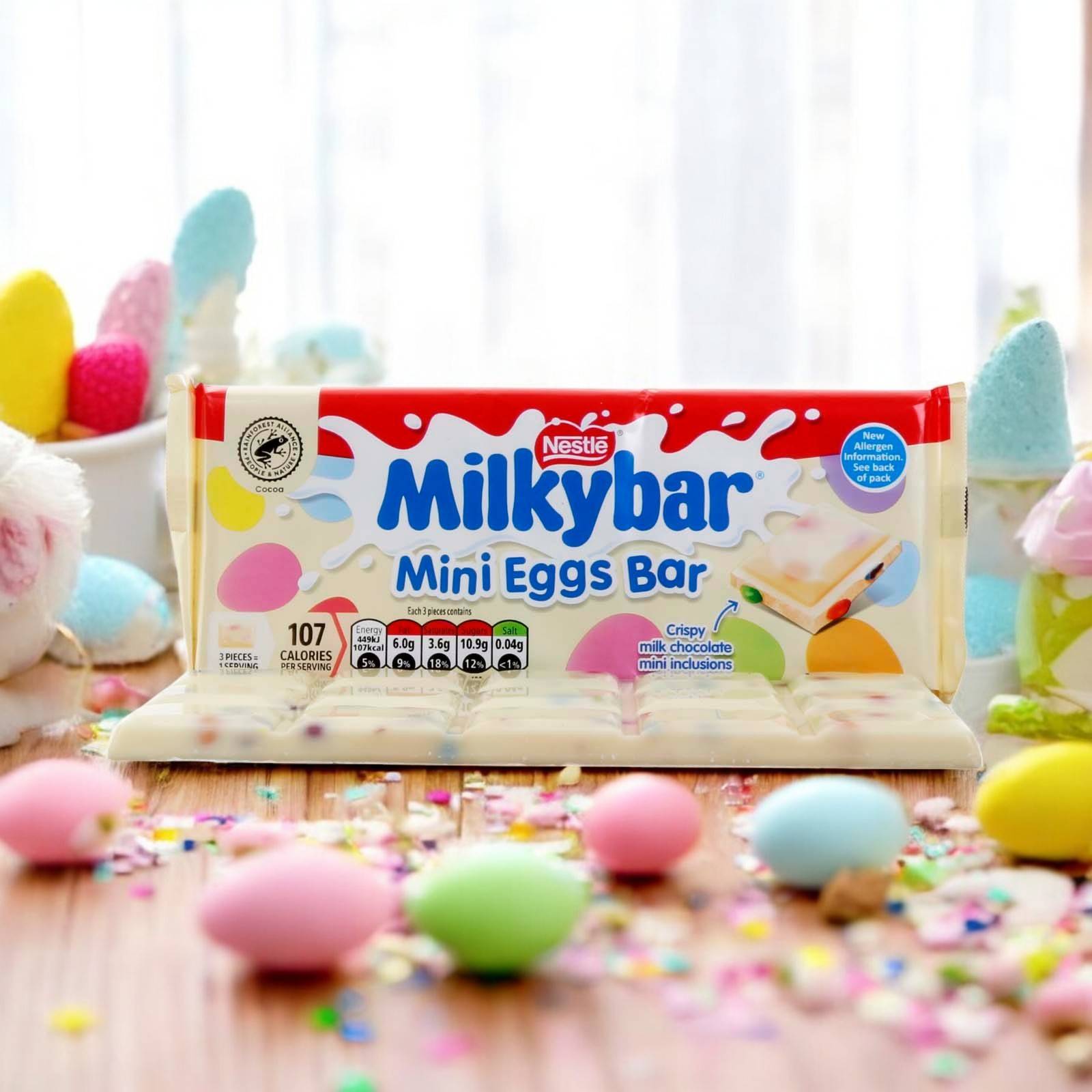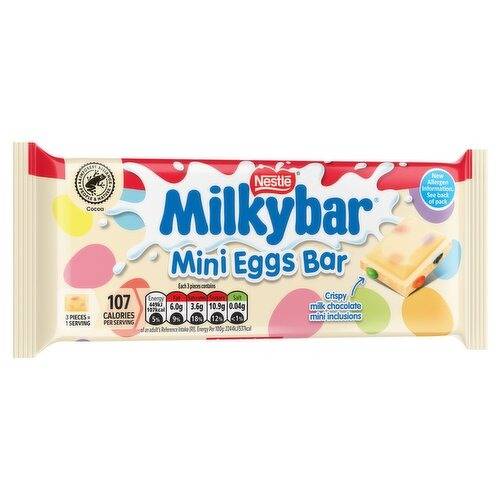 100g Milkybar® creamy white chocolate sharing bar with crunchy mini eggs inclusions