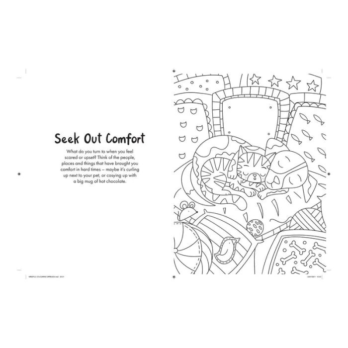 From chilled out sloths and meditating snow monkeys to soothing beach scenes and cosy jungle forts, the images and accompanying text invite kids to take a breath and find focus as they work through the colouring pages.