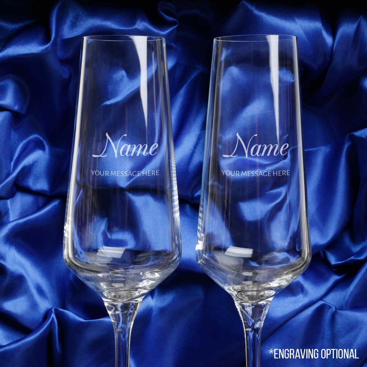 Make it extra special by engraving both flutes with your chosen text.