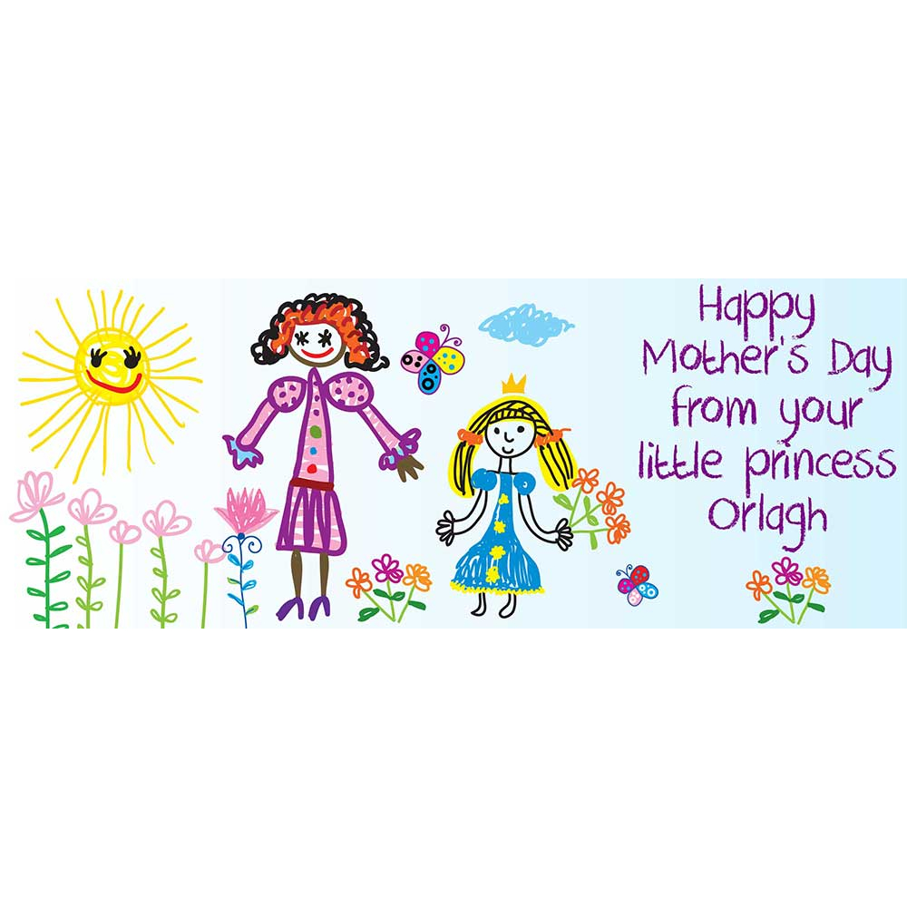 The mug is personalised with the daughter's name, wishing Mum a Happy Mother's Day. i.e.