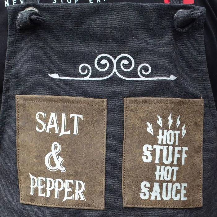 Turn the heat up this BBQ season with our unique Mr. Good Lookin' Apron! Perfect for anyone who knows they look good at the grill, this fun printed chef apron is the perfect addition to any grill master's wardrobe! Featuring dedicated pockets for salt and pepper, hot sauce, and of course beer, this cooking apron is functional and fashionable!
