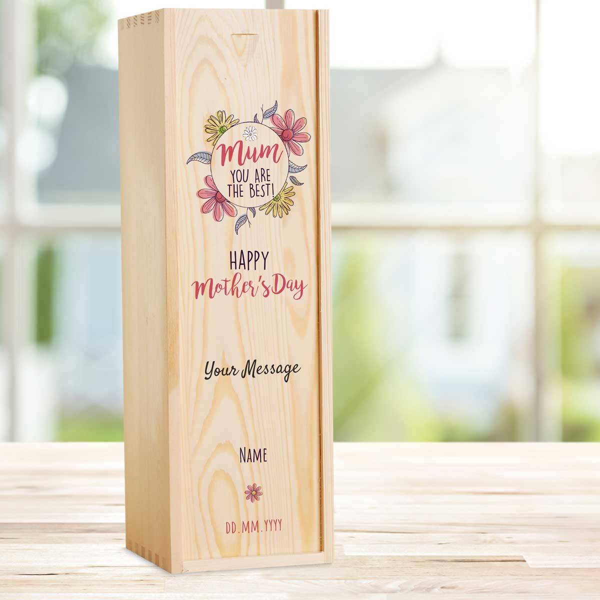 This personalised wine box with a bottle of wine makes the perfect present for Mother's day.