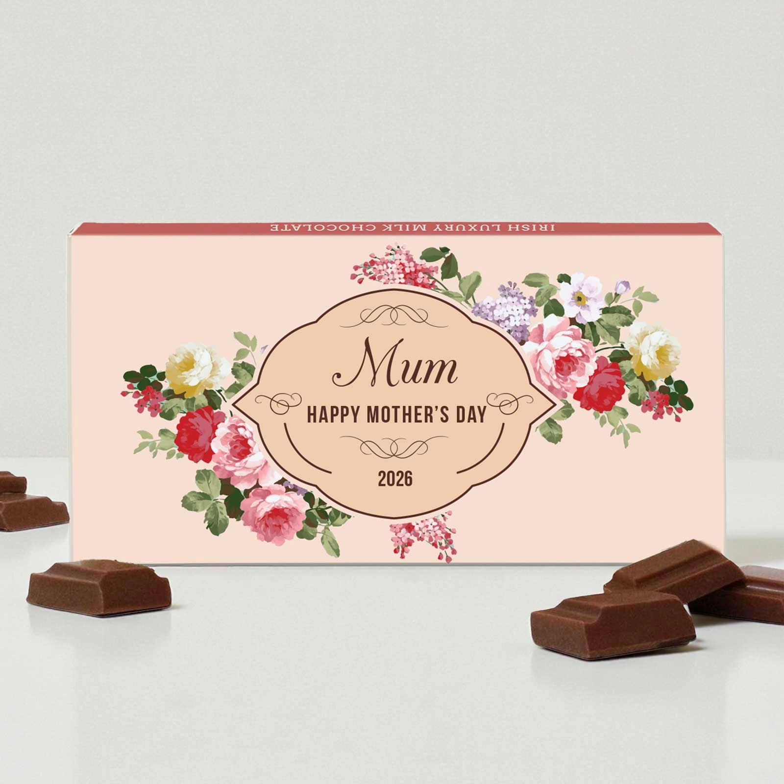 Delight your mum with a personalised treat she'll adore! Our Mum's Chocolate Flowers Personalised Chocolate Bar 90g combines the rich, creamy taste of Irish milk chocolate with a beautifully customised floral wrapper, making it a truly special gift.