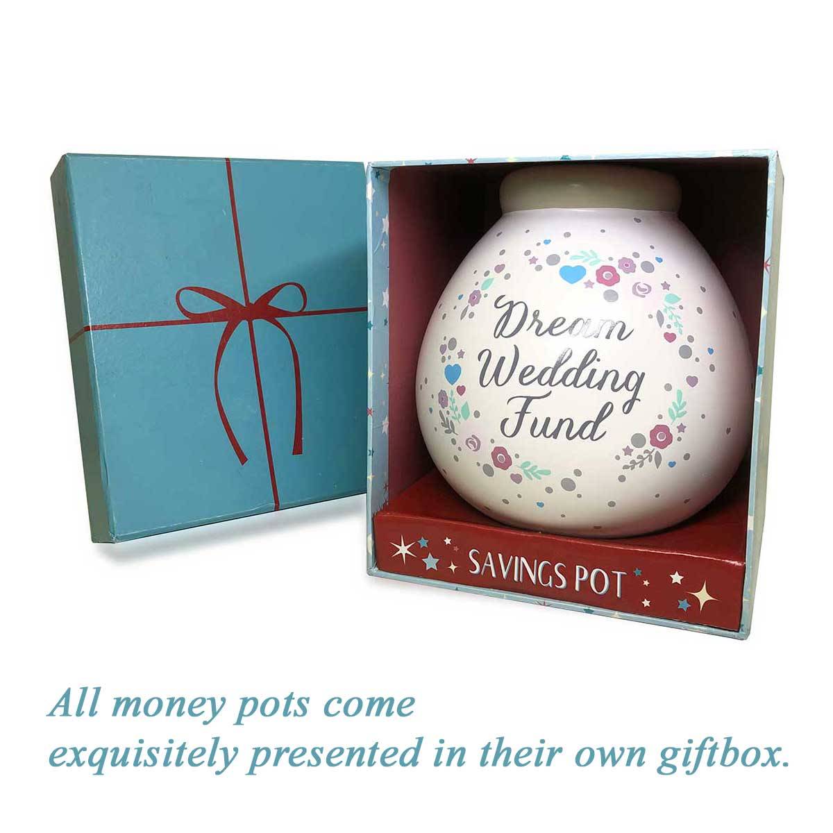 From the new Hopes & Dreams Money Pot range, this charming hand-decorated ceramic money box makes a fantastic gift and comes exquitely presented in a rigid gift box.