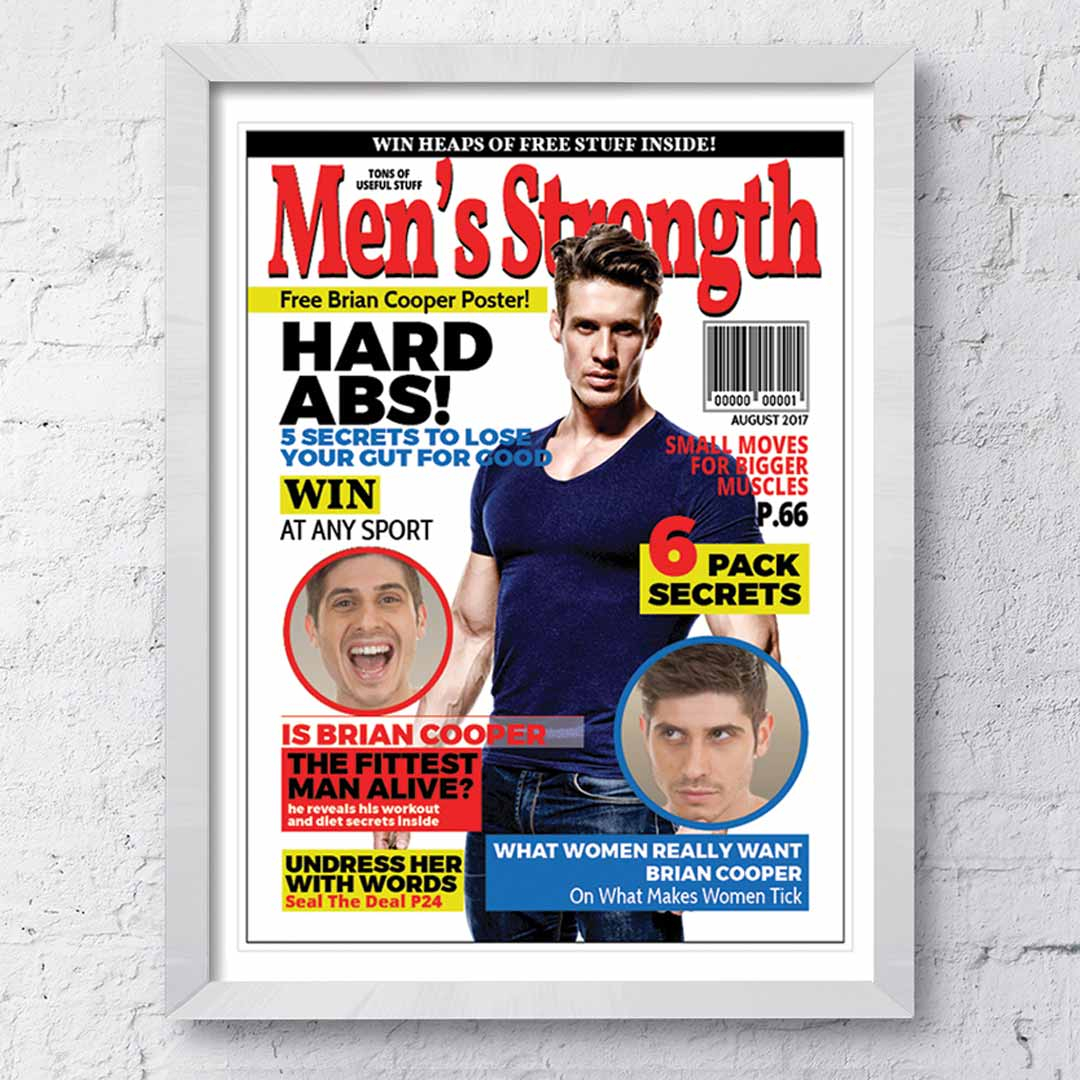Muscle Man Magazine Spoof - Personalise: The ultimate fun and unique gift for fitness fans, gym lovers, or anyone who appreciates a great laugh! This personalised spoof magazine cover mimics a bold, vibrant fitness magazine, featuring your chosen name and photo to create a custom cover star experience.