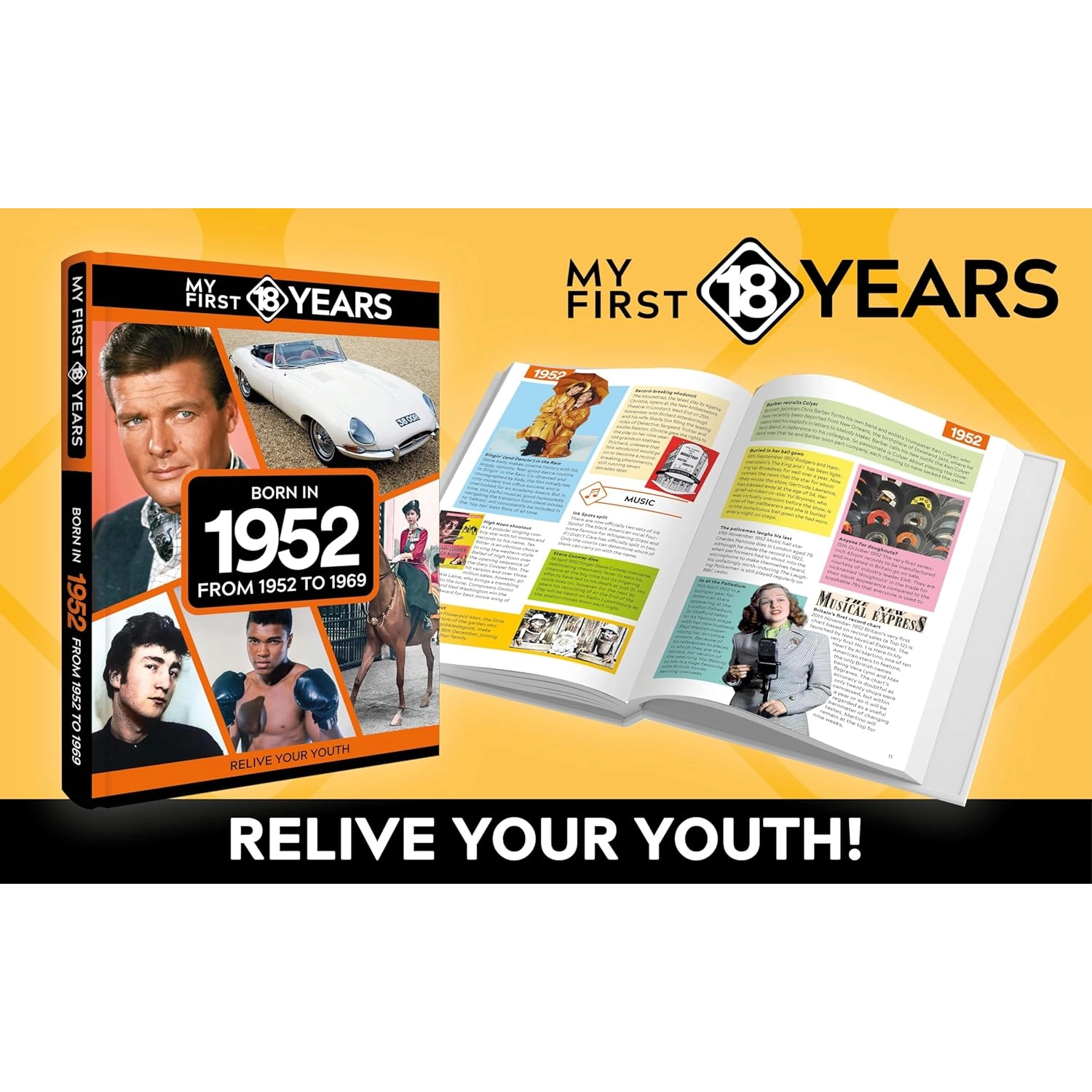You’ll rekindle literally hundreds of happy, sad and often hilarious memories – whether of favourite cuddly toys, fly-by-night fads or fashionable brands, your first visits to the cinema or garish styles you’ll be amazed that you ever wore. They’re all here, alongside coverage of those eye-popping news stories and seismic world events that helped shape the world you grew up in – and memories, too, of the much-loved stars of sport, stage, music, film and TV who lit up our lives from 1952 to 1969.