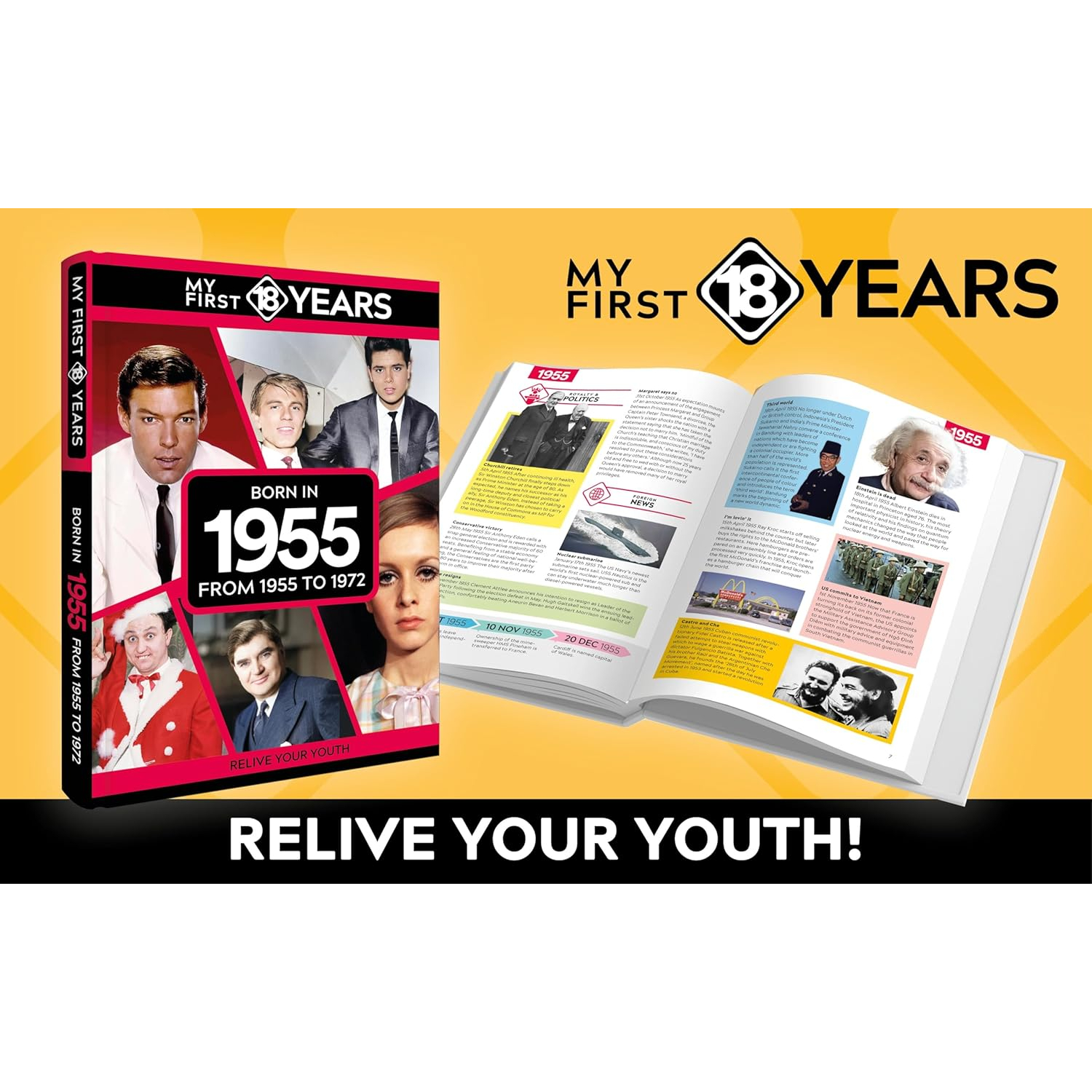 You’ll rekindle literally hundreds of happy, sad and often hilarious memories – whether of favourite cuddly toys, fly-by-night fads or fashionable brands, your first visits to the cinema or garish styles you’ll be amazed that you ever wore. They’re all here, alongside coverage of those eye-popping news stories and seismic world events that helped shape the world you grew up in – and memories, too, of the much-loved stars of sport, stage, music, film and TV who lit up our lives from 1955 to 1972.