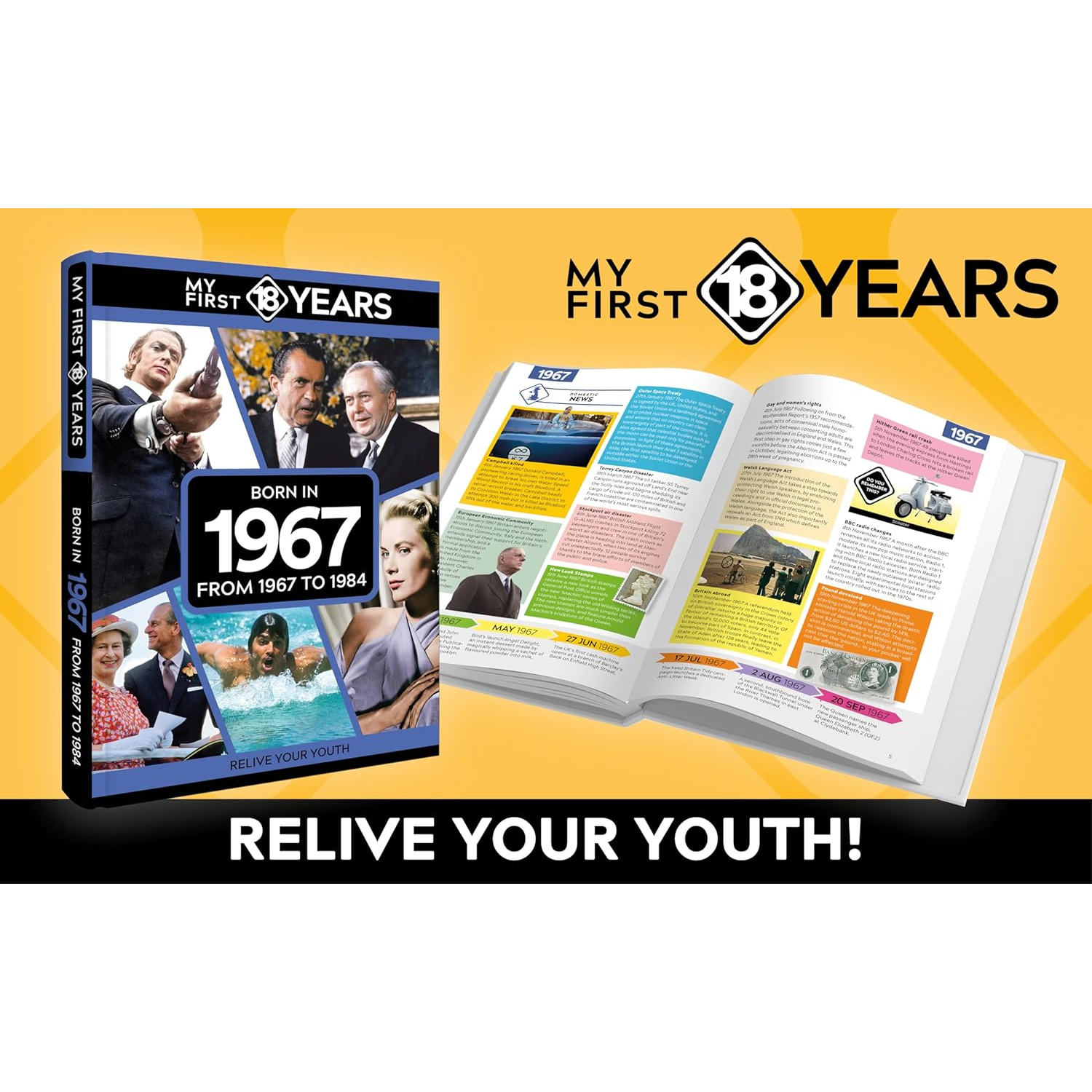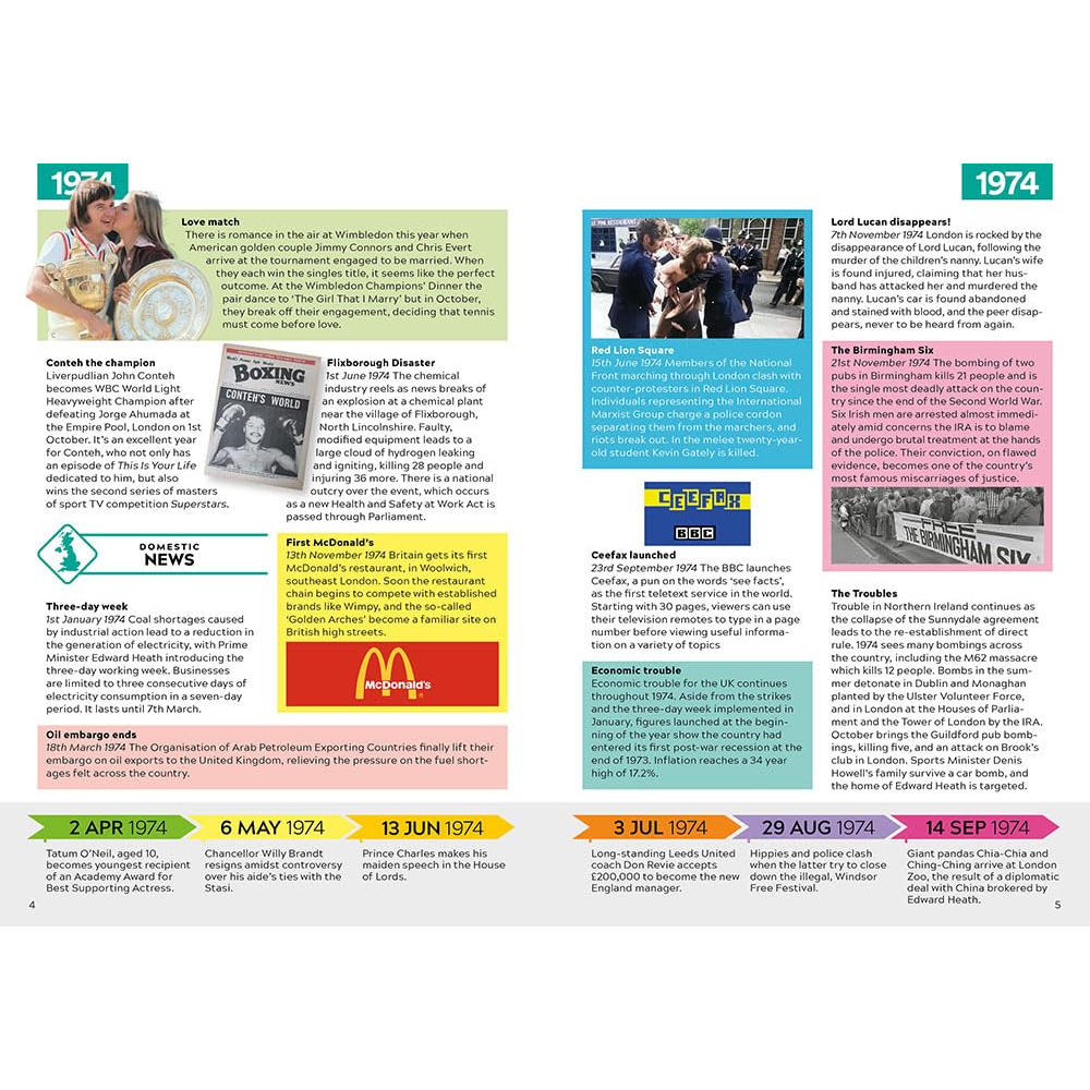 You’ll rekindle literally hundreds of happy, sad and often hilarious memories – whether of favourite cuddly toys, fly-by-night fads or fashionable brands, the TV and radio shows you loved or garish styles you’ll be amazed that you ever wore. They’re all here, alongside coverage of those eye-popping news stories and seismic world events that helped shape the world you grew up in – and memories, too, of the much-loved stars of sport, stage, music, film and TV who lit up our lives from 1967 to 1984.