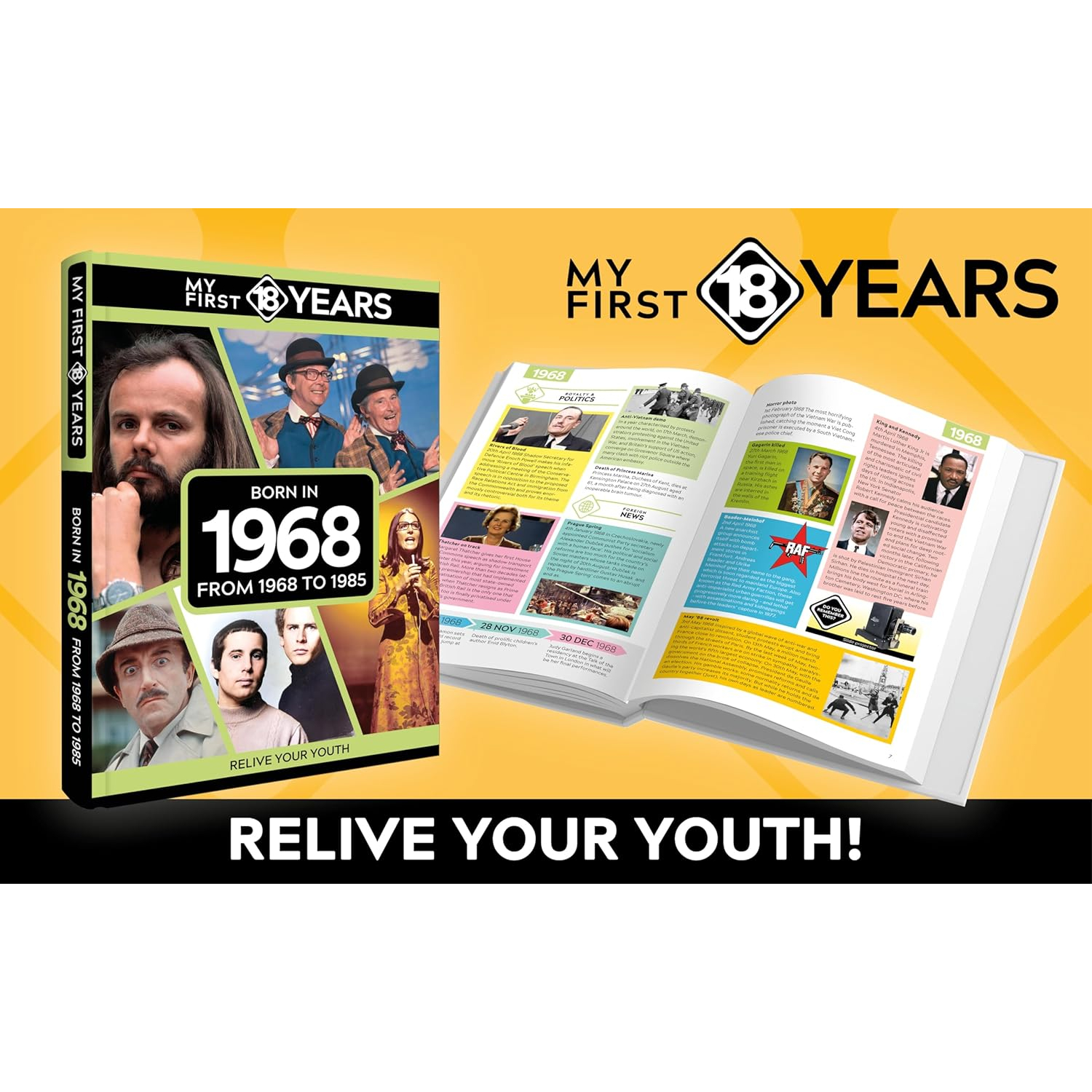 You’ll rekindle literally hundreds of happy, sad and often hilarious memories – whether of favourite cuddly toys, fly-by-night fads or fashionable brands, computer games that made funny noises as they loaded or garish styles you’ll be amazed that you ever wore. They’re all here, alongside coverage of those eye-popping news stories and seismic world events that helped shape the world you grew up in – and memories, too, of the much-loved stars of sport, stage, music, film and TV who lit up our lives from 1968 to 1985.