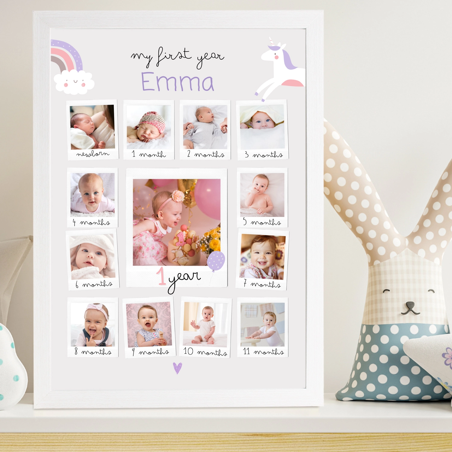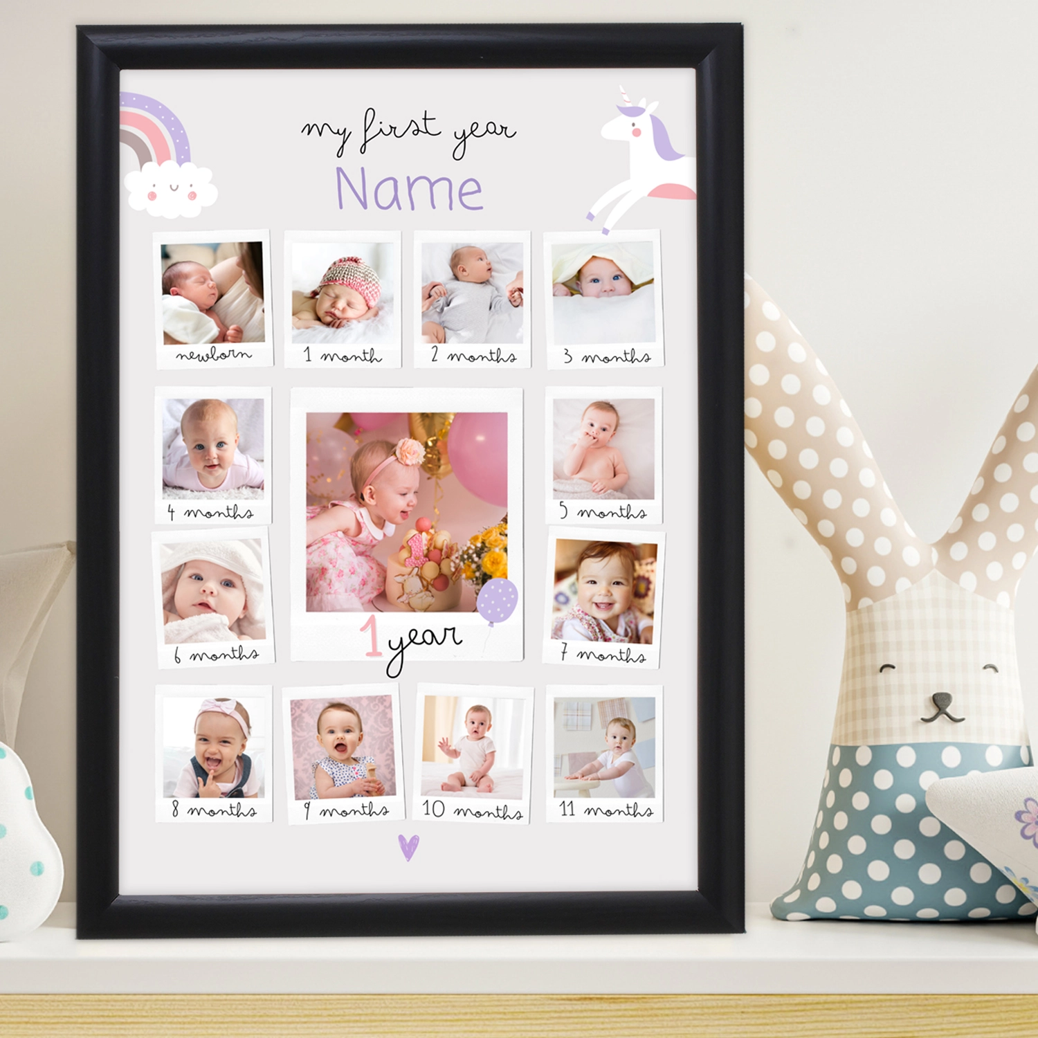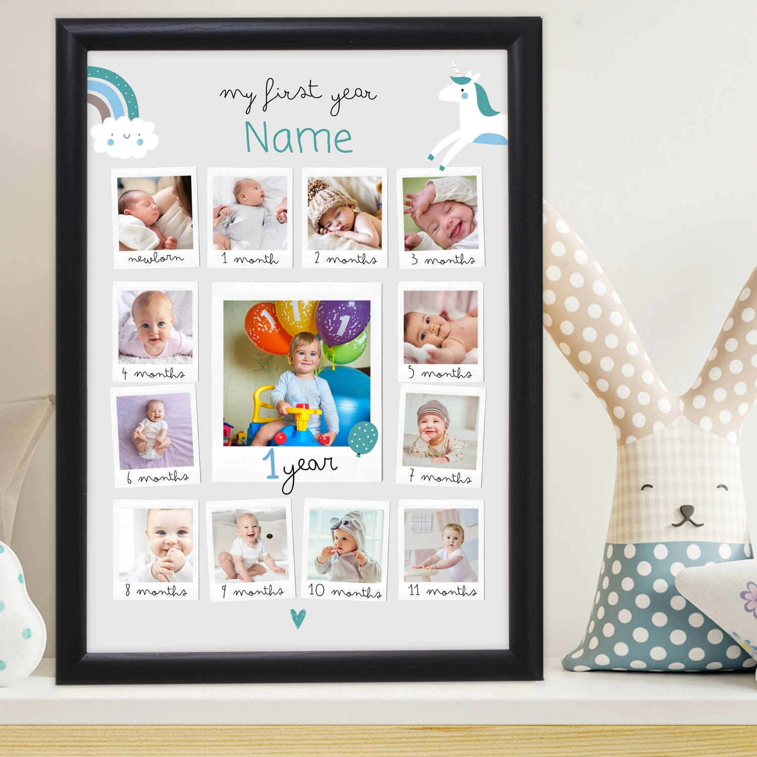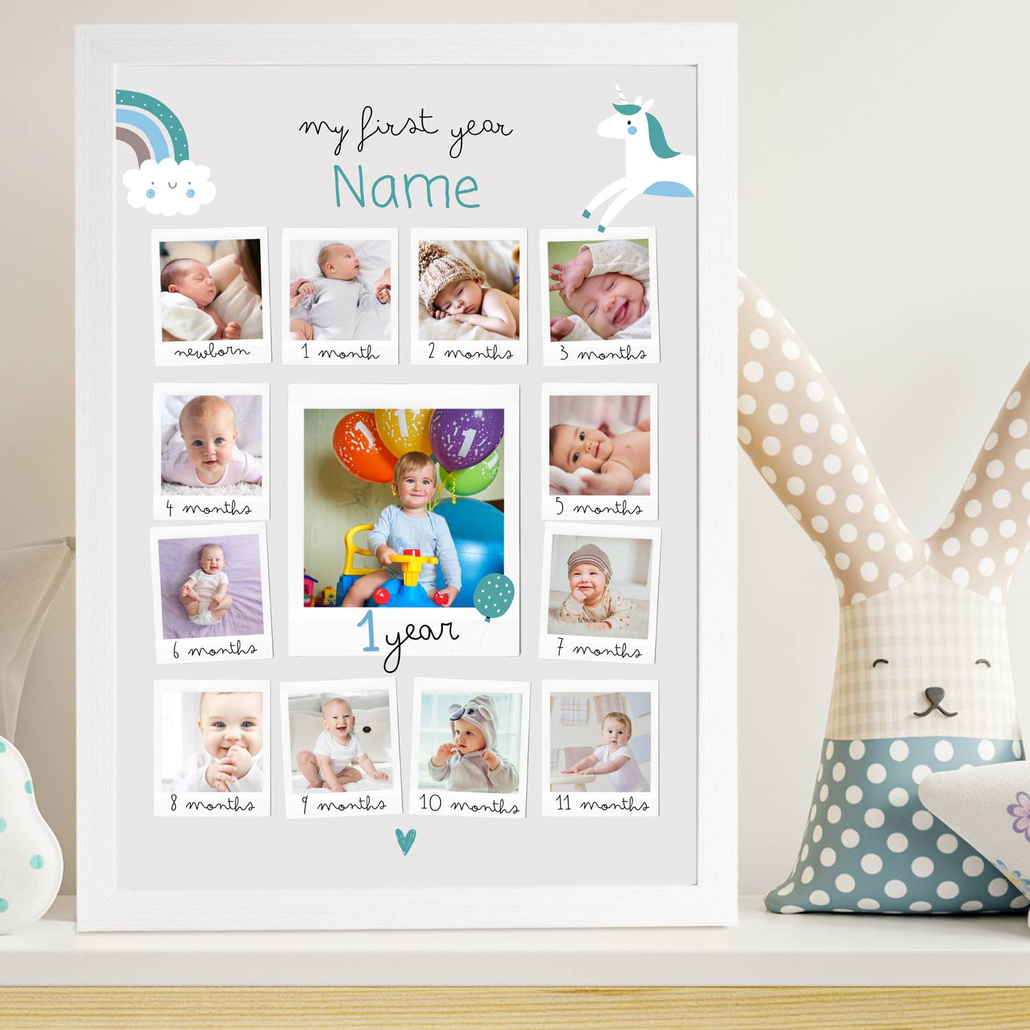 The "My First Year Memories Personalized Poster" is a heartwarming keepsake capturing your baby's journey through their first 12 months.