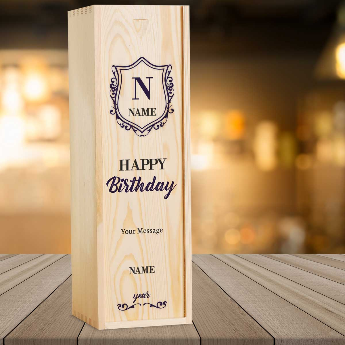Name And Initials Happy Birthday Blue Personalised Wooden Single Wine Box