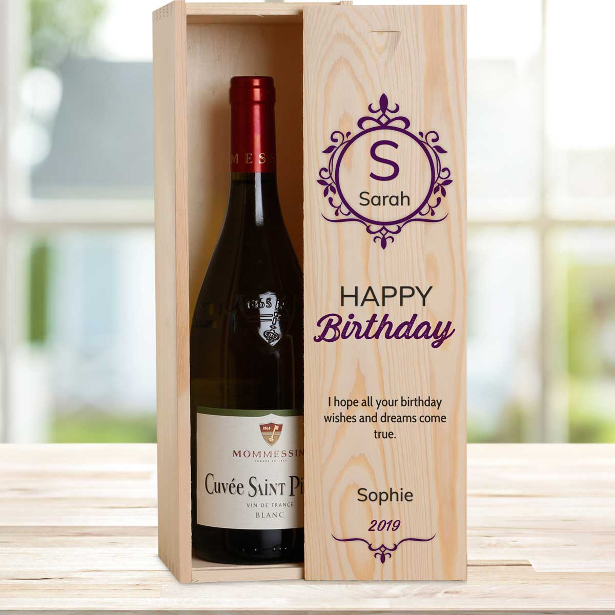 This personalised wine box with a bottle of wine makes the perfect birthday gift.